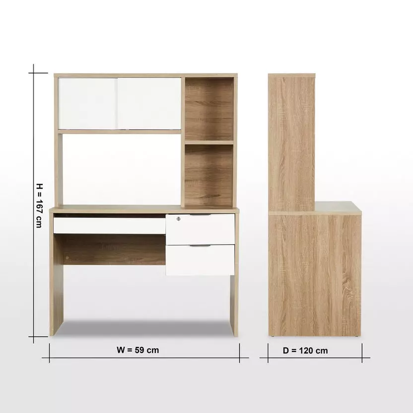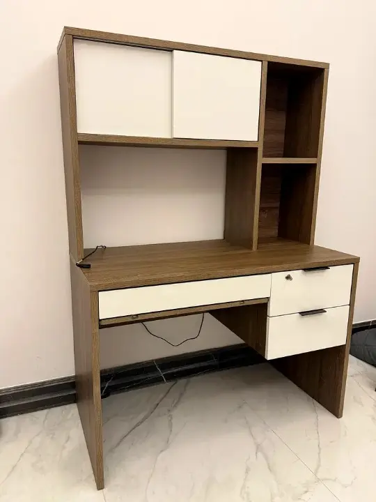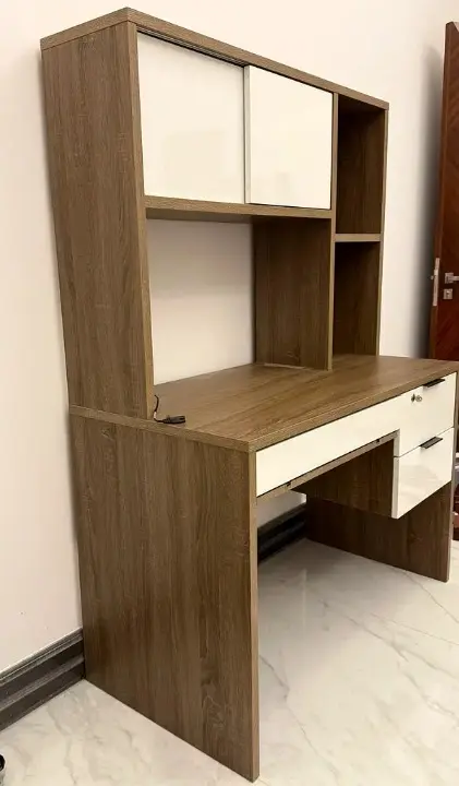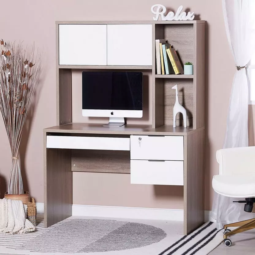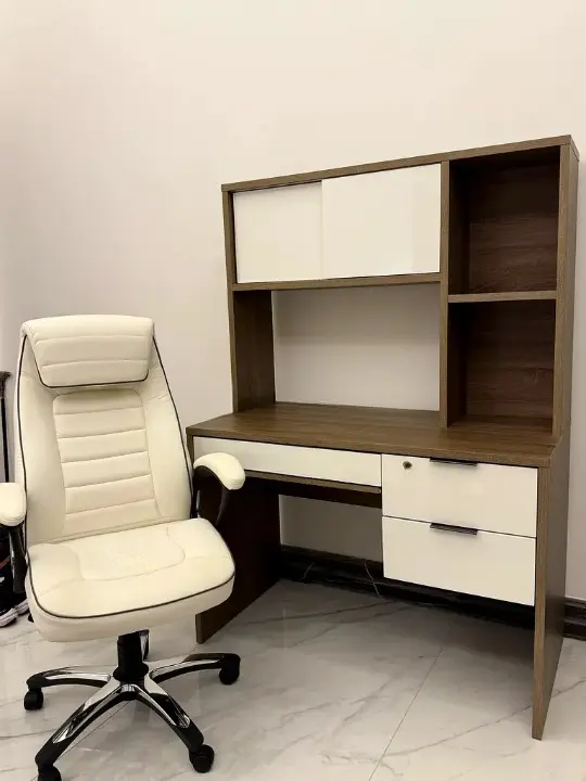 مكتب جديد يمزج بين الأناقة والوظائف العملية، فهو يأتي مع خزانة توفر مساحة فعالة للعمل والمذاكرة. يتميز التصميم بخطوط نظيفة وأنيقة، مما يجعله إضافة مثالية لديكور منزلك.