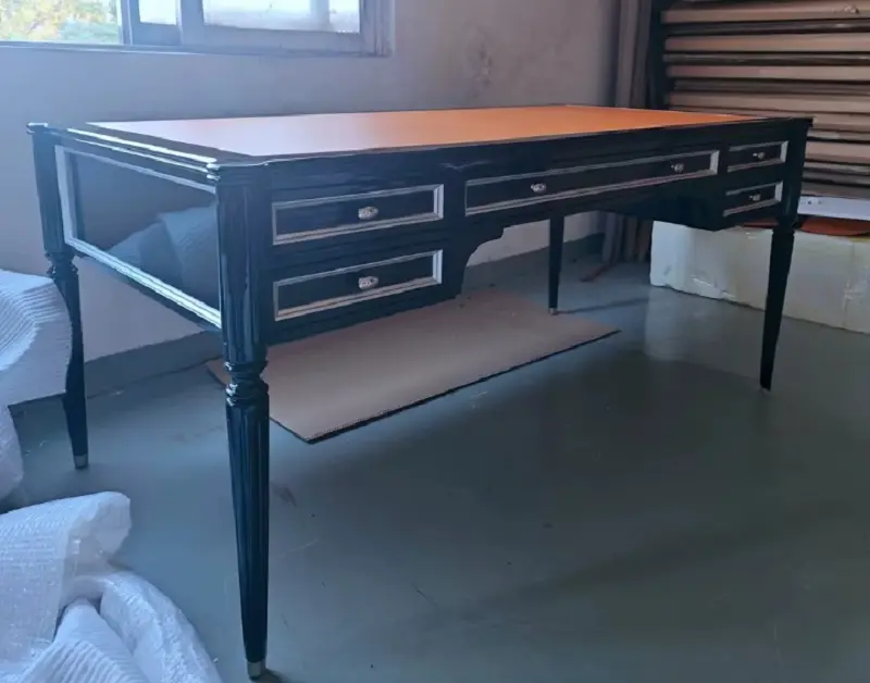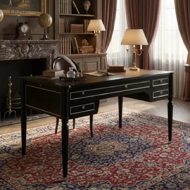 الطابع الكلاسيكي في هذا المكتب يمنحه حضورًا واضحًا دون مبالغة، لذلك يناسب البيوت التي تهتم بالتفاصيل الهادئة والمظهر المرتب. كما أن تنوع الألوان المتاحة يمنح مرونة أكبر عند تنسيقه مع الأثاث المحيط، سواء كان الديكور يميل إلى الأسلوب الكلاسيكي أو إلى مزيج بين الفخامة والبساطة.