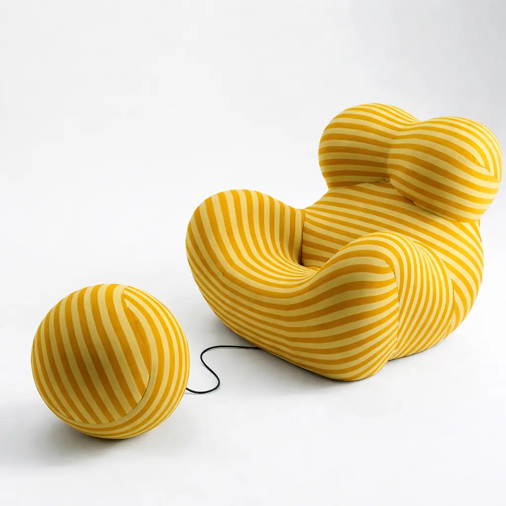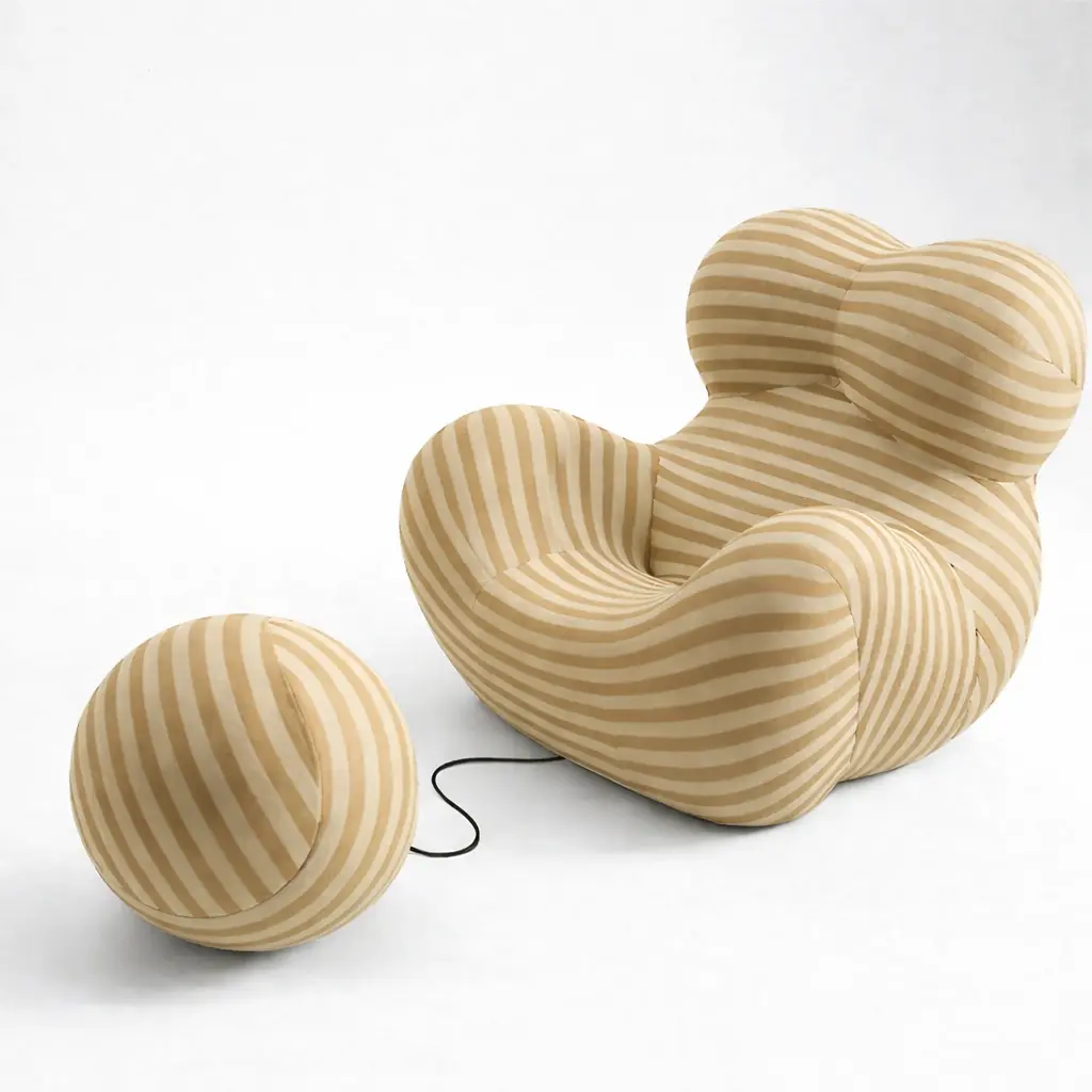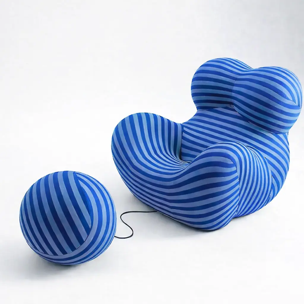 يتميز هذا الكرسي بتصميم مختلف عن الكراسي التقليدية، حيث لا يحتوي على إطار صلب، بل يعتمد بالكامل على الإسفنج عالي الكثافة الذي يمنح الجالس إحساسًا بالراحة والمرونة. هذا النوع من التصميم يساعد على توزيع الوزن بشكل متوازن ويمنح الجسم دعمًا مريحًا أثناء الجلوس.