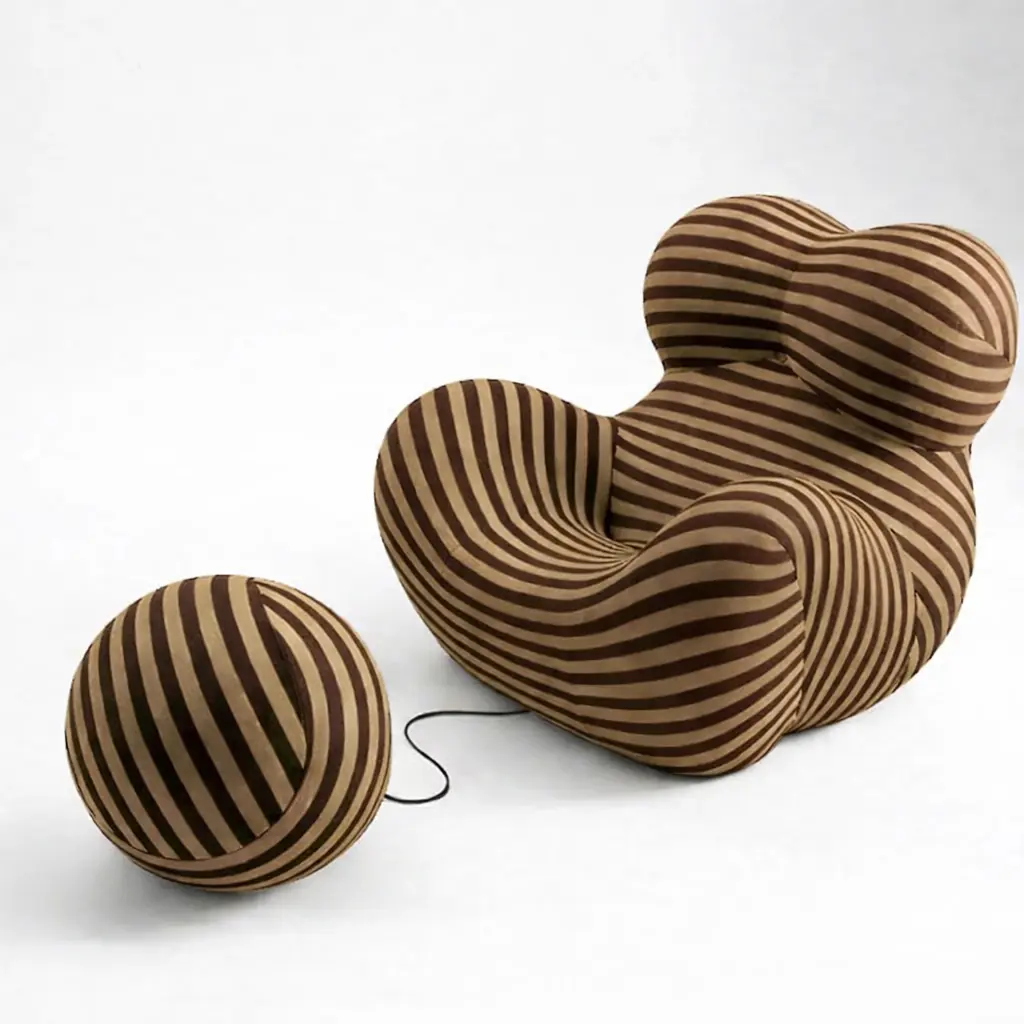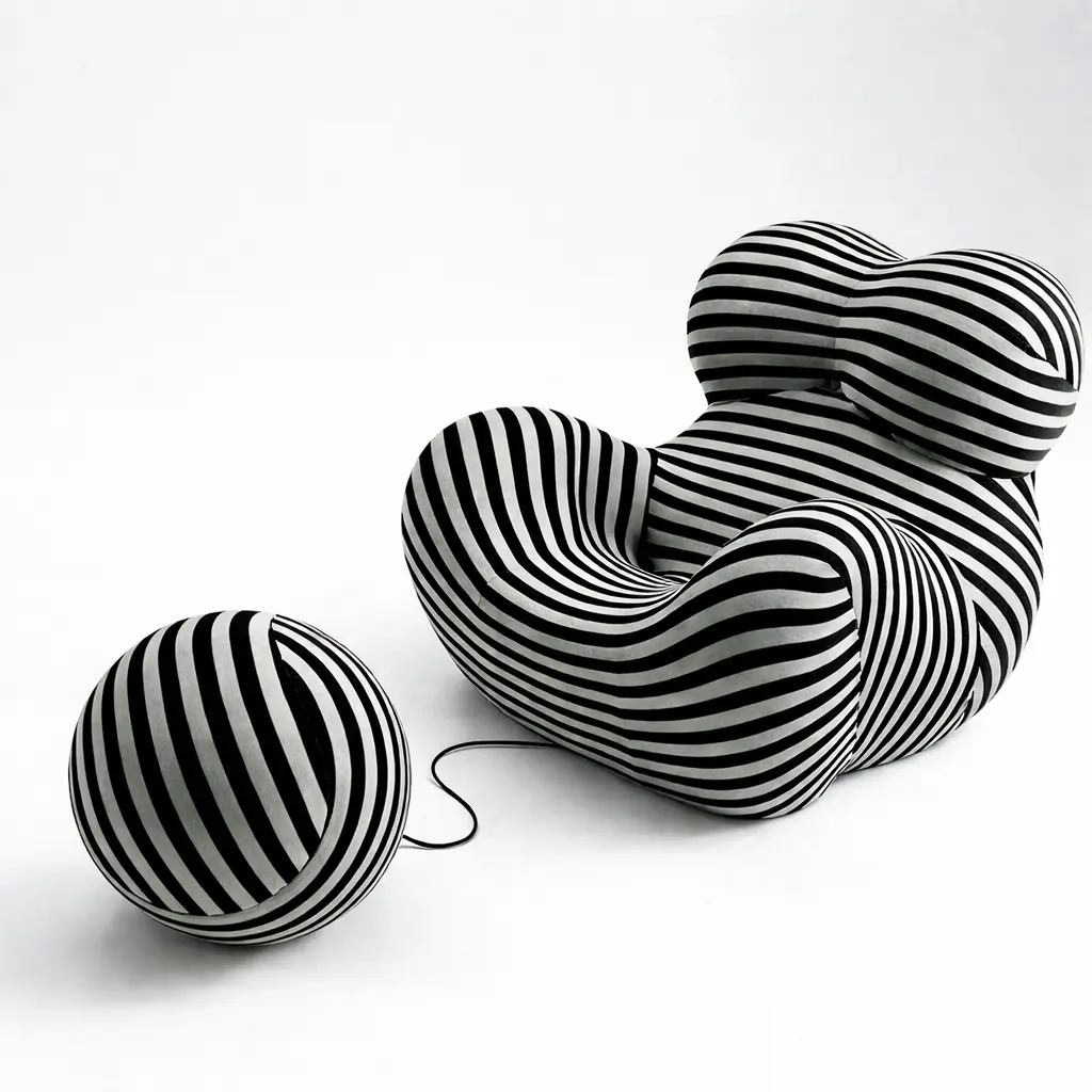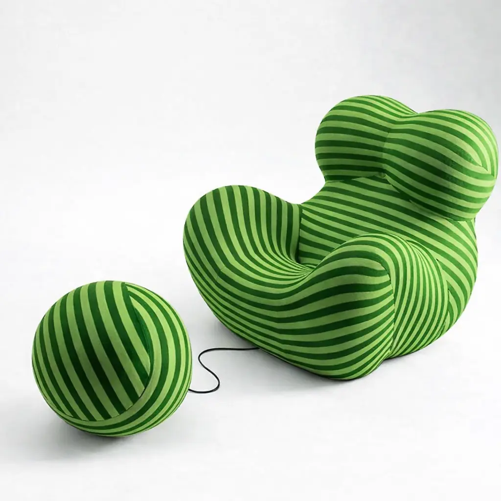 يتميز هذا الكرسي بتصميم مختلف عن الكراسي التقليدية، حيث لا يحتوي على إطار صلب، بل يعتمد بالكامل على الإسفنج عالي الكثافة الذي يمنح الجالس إحساسًا بالراحة والمرونة. هذا النوع من التصميم يساعد على توزيع الوزن بشكل متوازن ويمنح الجسم دعمًا مريحًا أثناء الجلوس.