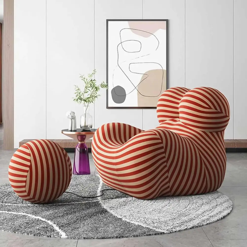 يعد كرسي استرخاء من القطع المميزة التي تضيف الراحة إلى كنب غرفة معيشة، حيث يمنح المستخدم مساحة جلوس منفصلة مخصصة للاسترخاء والجلوس لفترات طويلة. يتميز هذا التصميم بأسلوب عصري يمنح الغرفة حضورًا أنيقًا ويتناسق بسهولة مع مختلف أنماط الأثاث.