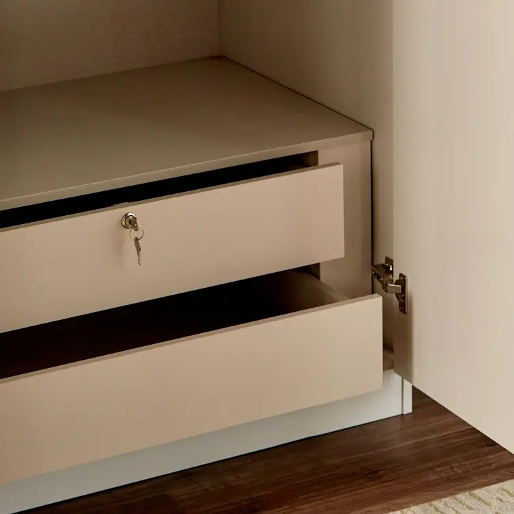 كما أن سطح الخزانة سهل التنظيف، حيث يمكن الحفاظ على مظهره باستخدام تنظيف بسيط دون الحاجة إلى عناية معقدة، مما يجعلها مناسبة للحياة اليومية داخل المنزل.