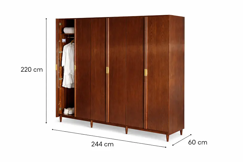 خزانة ملابس من أركان القصر للأثاث هي الخيار الأمثل لك. تتميز بتصميم كلاسيكي أنيق يناسب جميع الأذواق، كما أنها مصنوعة من مواد عالية الجودة تدوم طويلاً. تتوفر بـ 6 أبواب، مما يوفر لك مساحة تخزين كبيرة لملابسك وأغراضك الشخصية الأخرى. تحتوي على مساحة واسعة من الرفوف والمساحة المعلقة والأدراج، مما يسمح لك بتنظيم ملابس وترتيبها بسهولة.