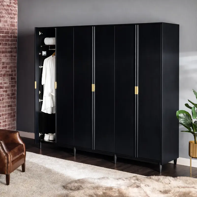 بفضل 6 أبواب ، يمكنك الاستفادة من مساحة تخزين واسعة تلبي احتياجاتك اليومية. توفر الرفوف والأدراج والمساحة المعلقة مكانًا منظمًا للملابس والإكسسوارات والضروريات الأخرى.