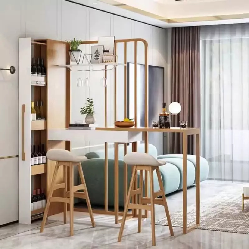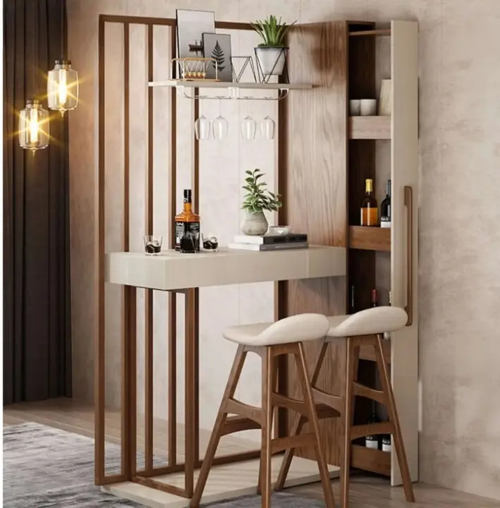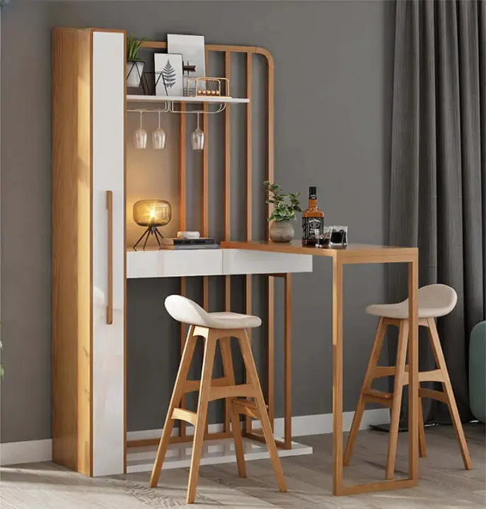 يعد ركن القهوة هذا خيارًا عمليًا لمن يرغب في استغلال الزوايا داخل المنزل بطريقة منظمة وأنيقة. تصميمه الزاوي يجعله مناسبًا كـ بوفيه قهوة مودرن يمكن وضعه في غرفة المعيشة أو المطبخ أو حتى في مساحة جانبية قريبة من المجلس.