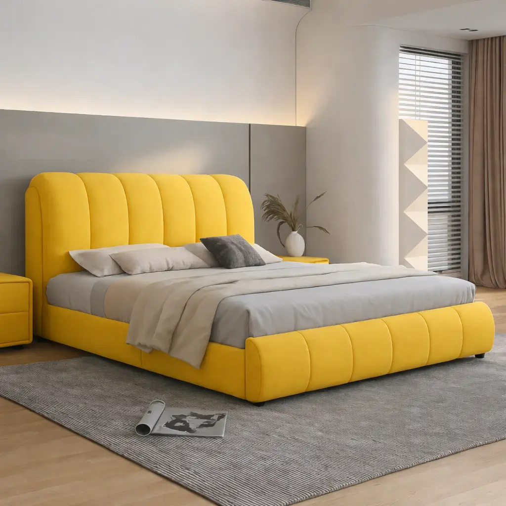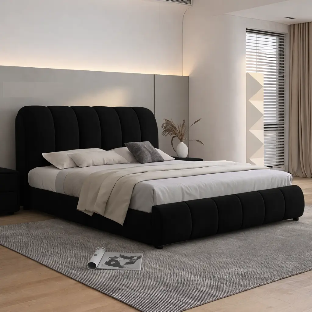هذه الخامات تجعل السرير مناسبًا لمن يبحث عن اثاث غرف نوم يجمع بين الجودة والشكل الأنيق.
