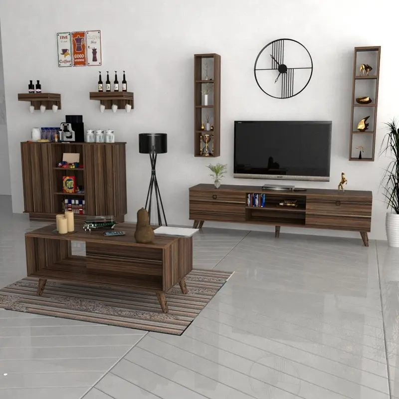 تتميز هذه القطع بالتصنيع من خشب هندسي وخشب زان روماني عالي الجودة ، ذو ملمس ميلامين مقاوم للخدوش، مما يعزز من قوة وتحمل الأثاث. يُضاف إلى ذلك، فإن المفصلات الهيدروليكية في الدرف تجعل عملية الإغلاق سلسة وهادئة.