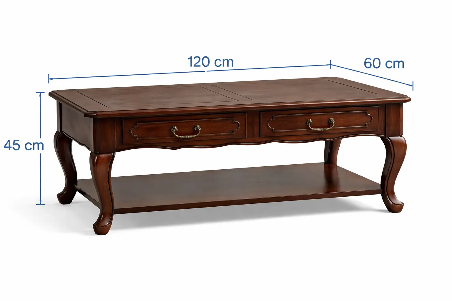 تأتي الطاولة بتصميم مستطيل يعكس روعة الفن اللويسي، مما يمنحها لمسة فنية فريدة. بفضل اللون السادة، يمكنك دمجها بسهولة مع مختلف ألوان الديكور المحيطة بها. يأتي هذا الإكسسوار الرائع مع درجين ورف سفلي واسع، مما يوفر لك مساحة إضافية لترتيب وتنظيم مستلزماتك بأناقة.