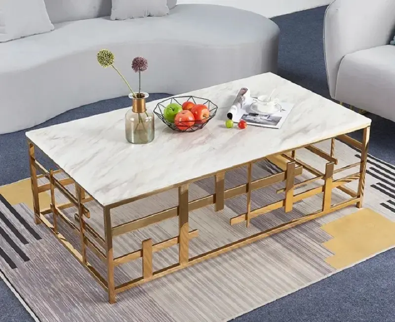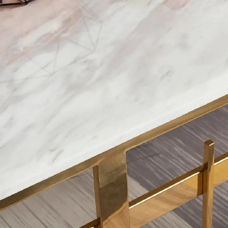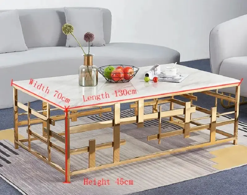 طاولة قهوة هذه تجمع بين الأناقة والوظيفة. بأبعادها المثالية (130x70x45 سم)، وسطح الرخام عالي الجودة المقاوم للحرارة، والقاعدة المعدنية المطلية باللون الذهبي، تعكس الطاولة فخامة وأناقة. مع ضمان لمدة سنتين ضد عيوب التصنيع، تجمع هذه الطاولة بين الجودة والأناقة لتكون إضافة مثالية لأي منزل.