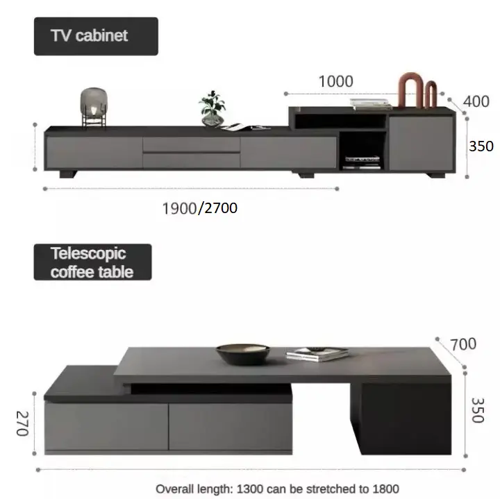 هذه المقاسات تمنح مرونة في الاستخدام، حيث يمكن تعديل الطاولات لتناسب مساحة غرفة المعيشة المختلفة.