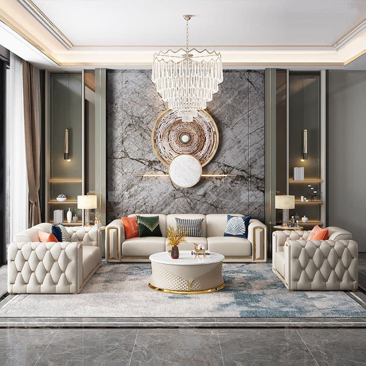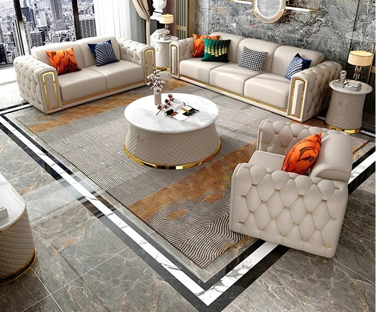يمكن استخدام هذا الطقم كـ كنب صالة معيشة أساسي داخل المنزل، حيث يوفر جلسة متكاملة تناسب العائلة والضيوف. كما أن توزيع القطع يساعد على استغلال المساحة بشكل أفضل، مع الحفاظ على سهولة الحركة داخل الغرفة.