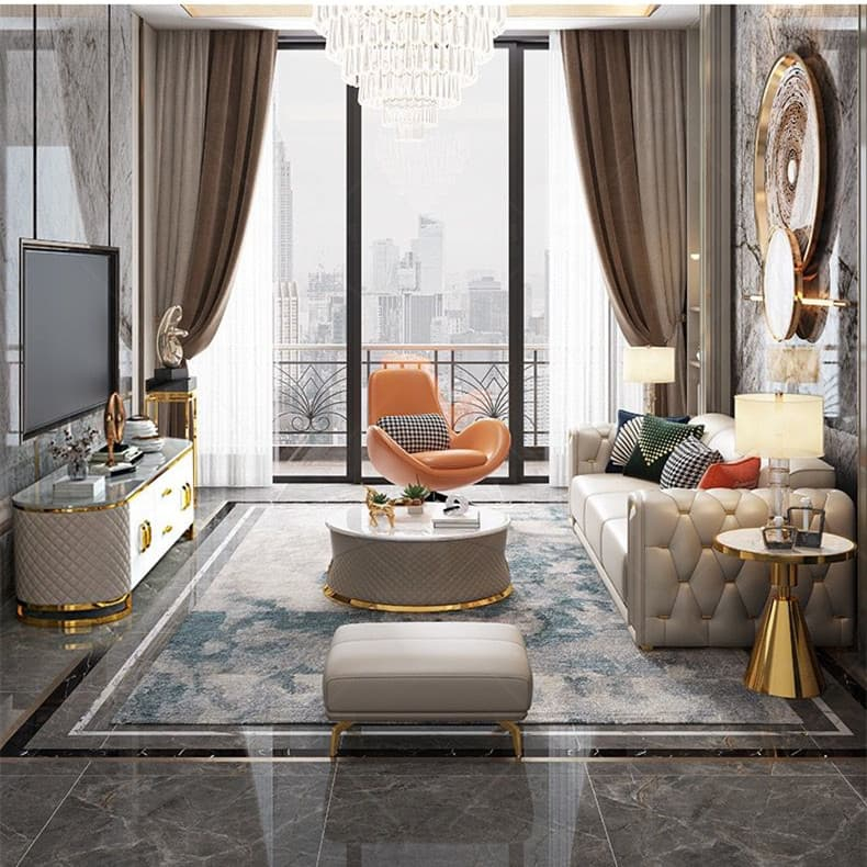 هذا التنوع في القطع يمنح مرونة في ترتيب الجلسة، مما يجعله مناسبًا للاستخدام اليومي أو استقبال الضيوف، مع الحفاظ على مظهر مرتب ومتناسق داخل الغرفة.