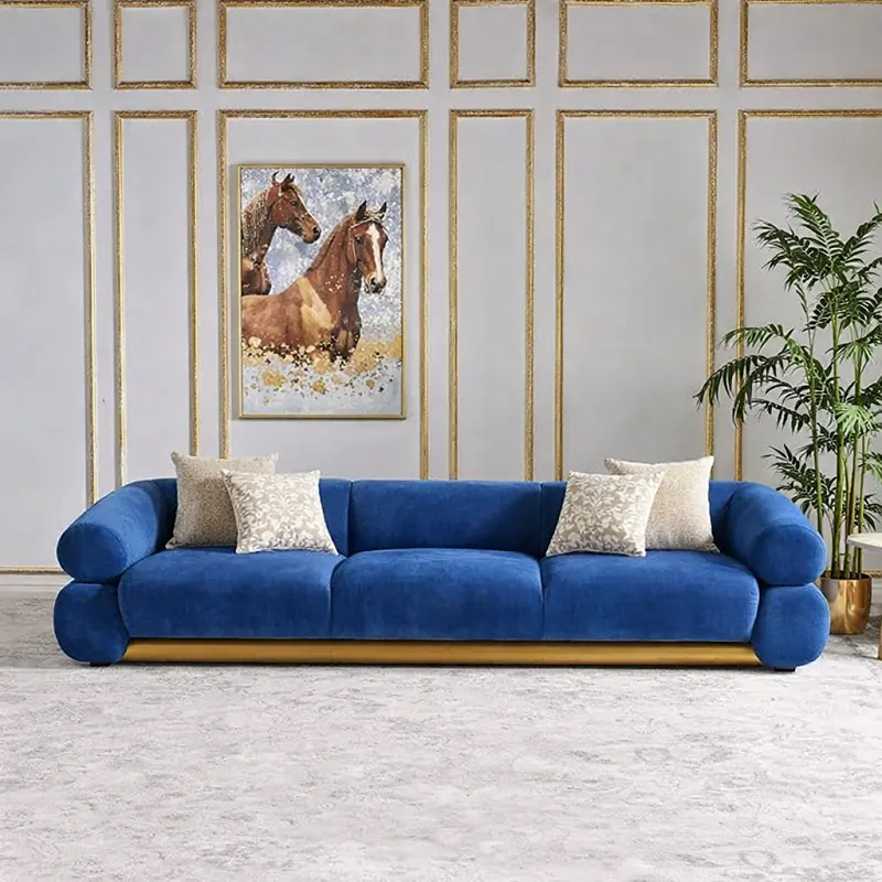 أضف لمسة فاخرة وعصرية إلى منزلك مع طقم الكنب المودرن من لوسيندا. مصنوع من خشب هندسي وخشب زان روماني عالي الجودة، ومحشو بإسفنج مريح ومغطى بقماش فاخر. يتميز الطقم بتصميم أنيق وقاعدة معدنية مذهبة. يتوفر بعدة أحجام وألوان تناسب مختلف الأذواق والديكورات. سهل التنظيف ويأتي بضمان لمدة سنتين ضد عيوب التصنيع في دول مجلس التعاون الخليجي.