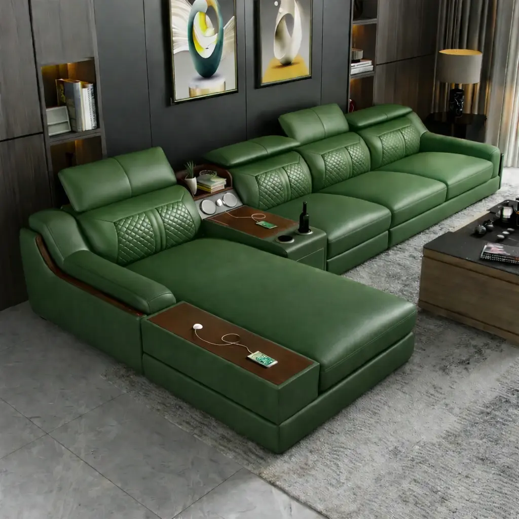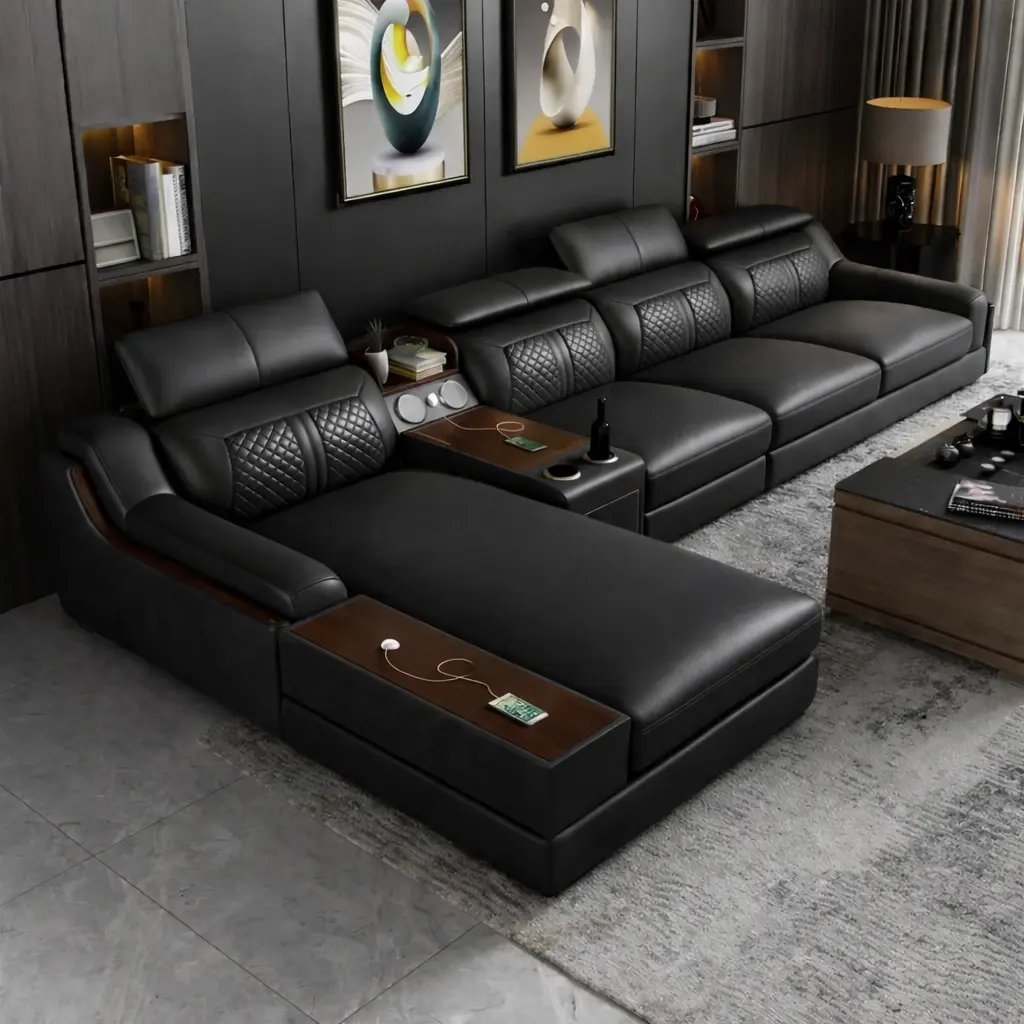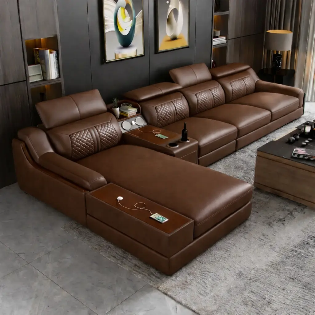 المقاعد مبطنة بإسفنج عالي الكثافة يمنح جلسة مريحة مع دعم مناسب للجسم، بينما يغطي الطقم جلد عالي الجودة مقاوم للحرارة، مما يساعد على الحفاظ على المظهر الأنيق مع الاستخدام المستمر. هذه التفاصيل تجعل الطقم مناسبًا لمن يبحث عن كنب مريح للاستخدام اليومي داخل غرفة المعيشة أو المجلس.