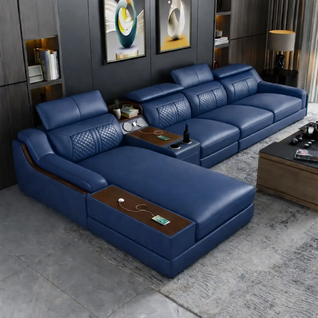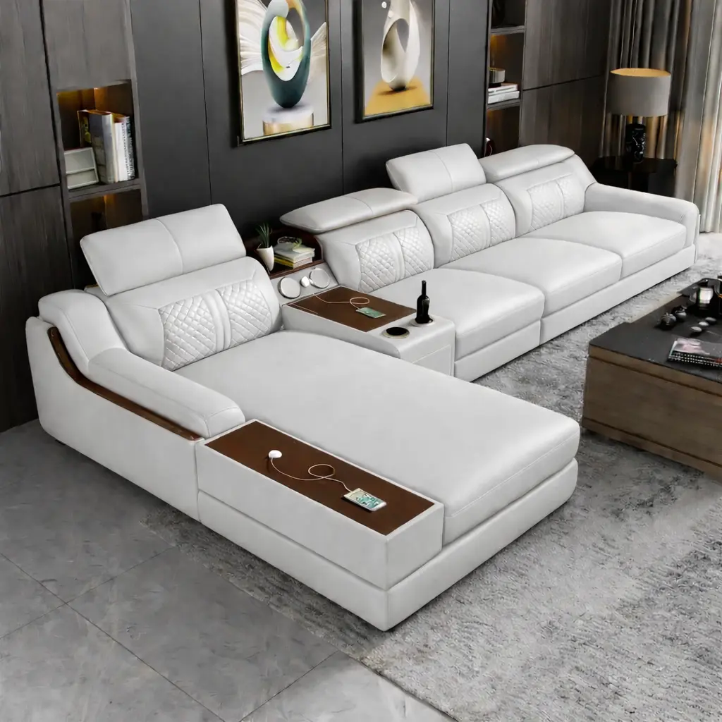 يساعد هذا التصميم على استغلال المساحة بشكل أفضل داخل غرفة المعيشة، حيث يمكن ترتيب الكنب في الزاوية ليمنح الغرفة انسيابية أكبر في الحركة مع توفير عدد أكبر من المقاعد. كما يمكن تنسيقه بسهولة مع طاولة قهوة ليكوّن طقم كنب مودرن متكامل داخل المنزل.