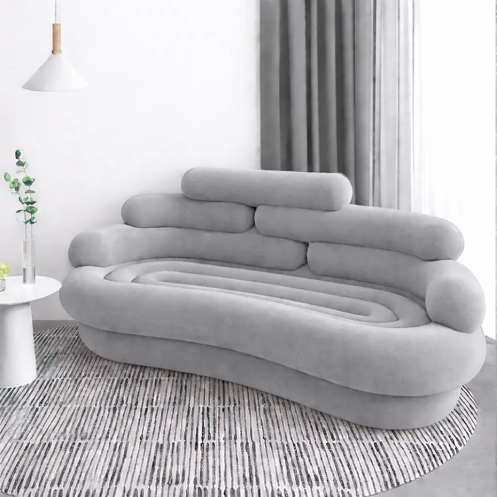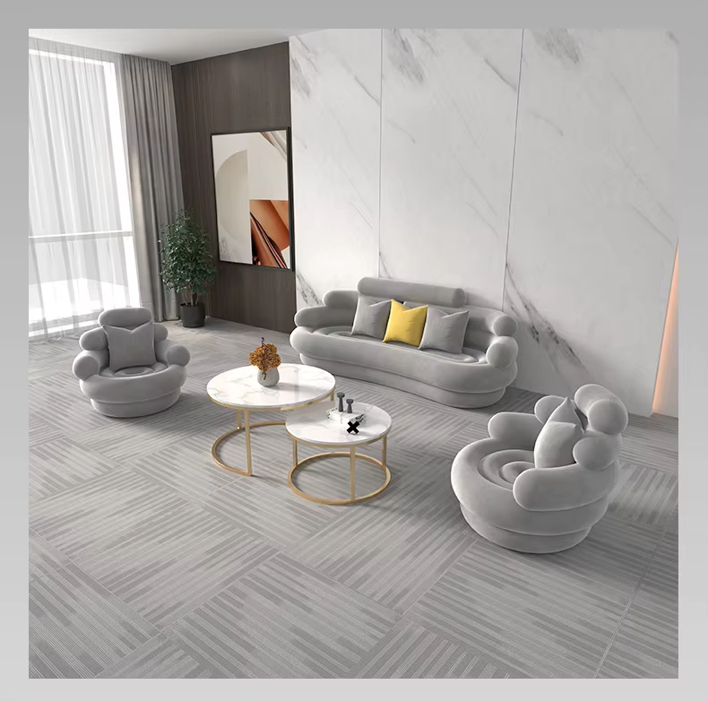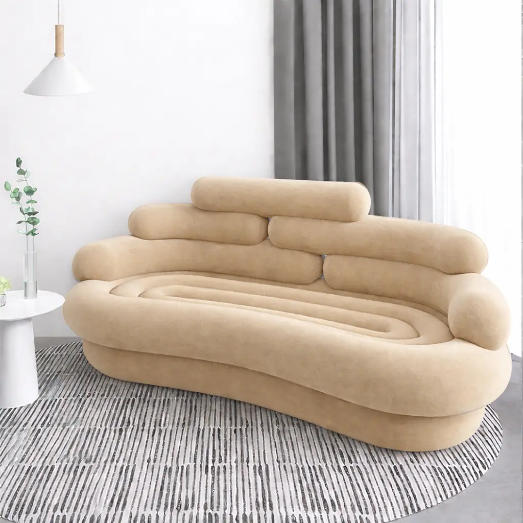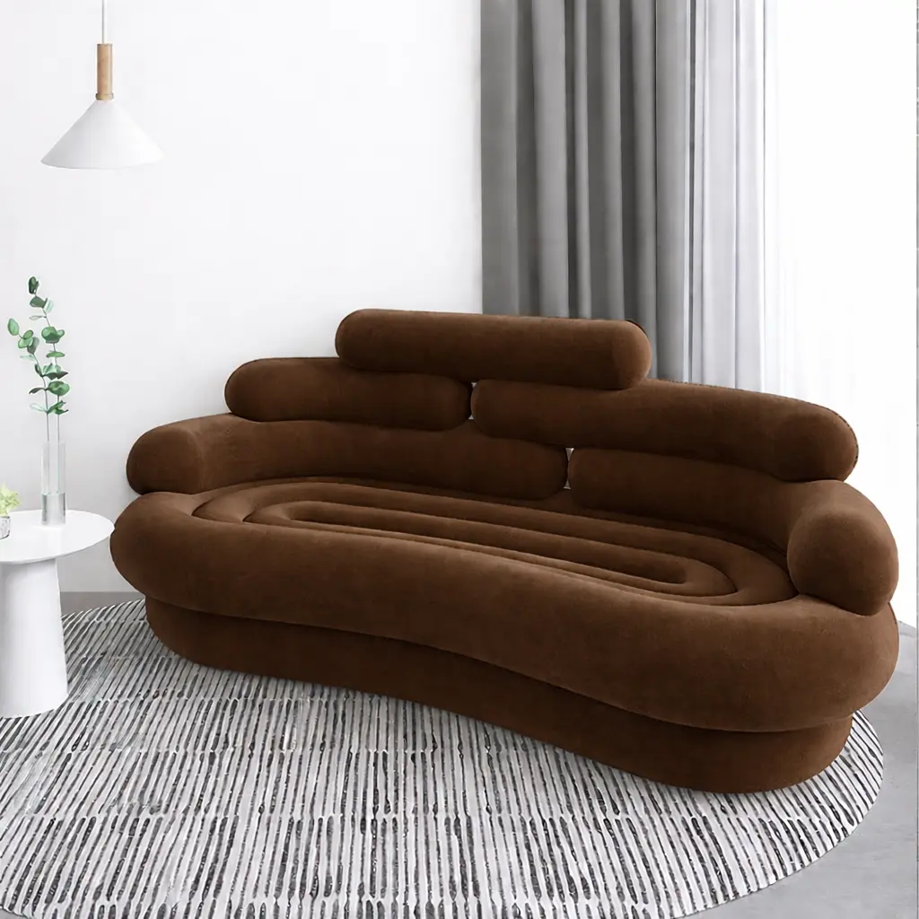 يأتي طقم الكنب المودرن هذا بتفاصيل مدروسة تمنحك مرونة في ترتيب القطع داخل الصالة، سواء كانت المساحة واسعة أو متوسطة. كما أن الانحناءات الناعمة في التصميم تضيف إحساسًا بالراحة البصرية وتنسجم بسهولة مع أنماط الديكور الحديثة.