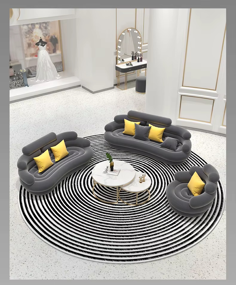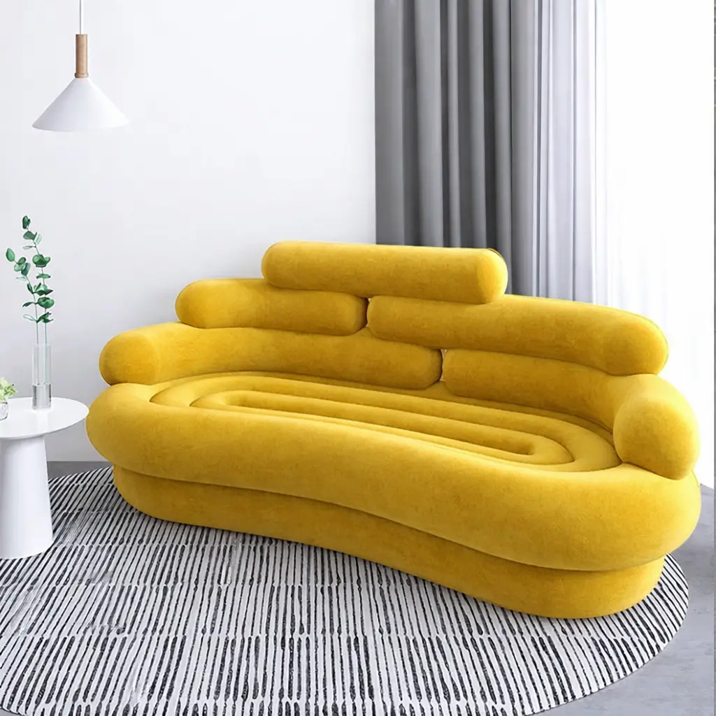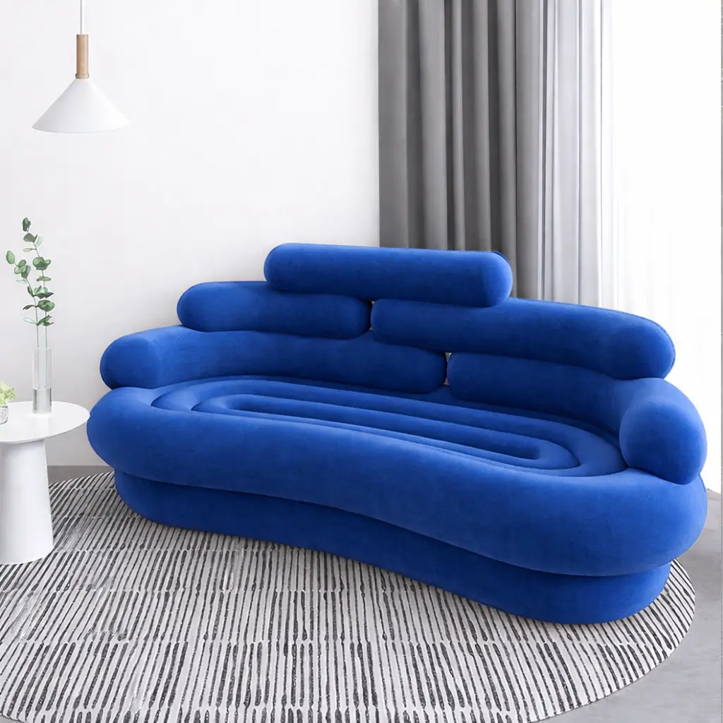 يأتي طقم الكنب المودرن هذا بتفاصيل مدروسة تمنحك مرونة في ترتيب القطع داخل الصالة، سواء كانت المساحة واسعة أو متوسطة. كما أن الانحناءات الناعمة في التصميم تضيف إحساسًا بالراحة البصرية وتنسجم بسهولة مع أنماط الديكور الحديثة.