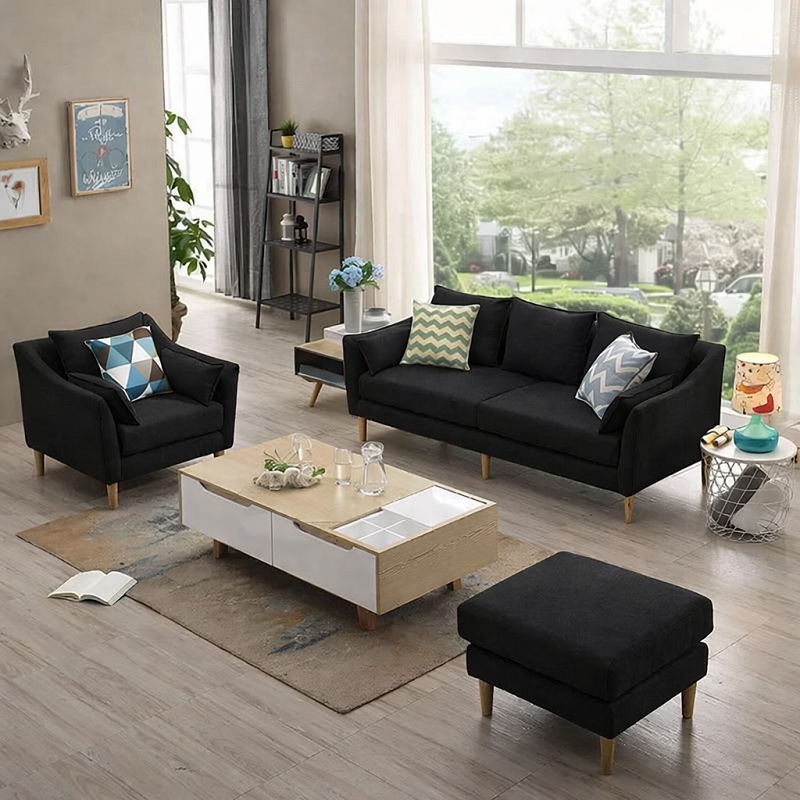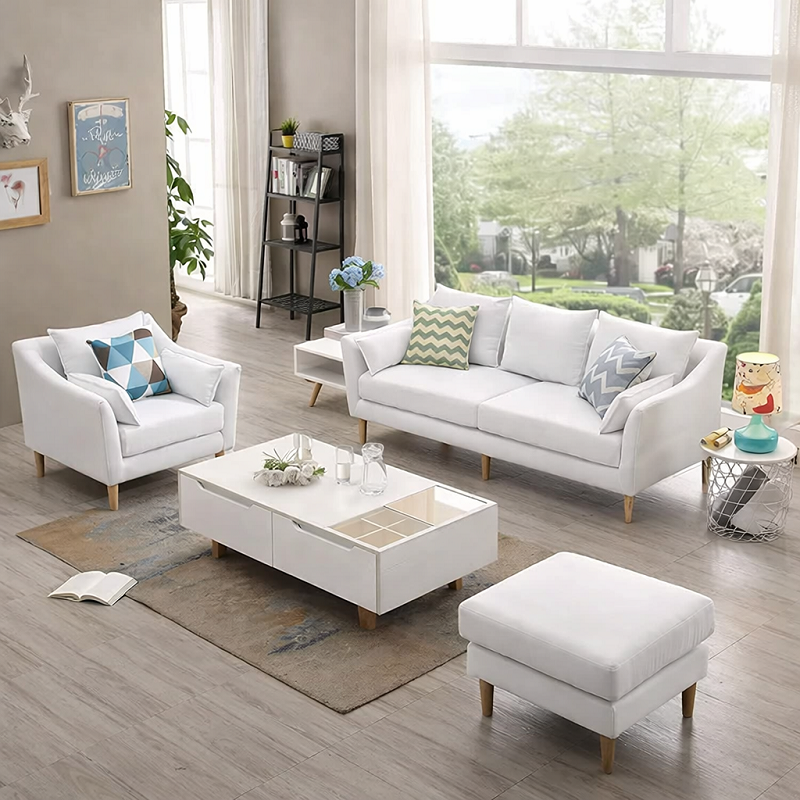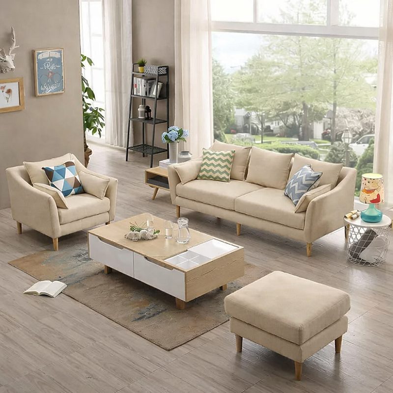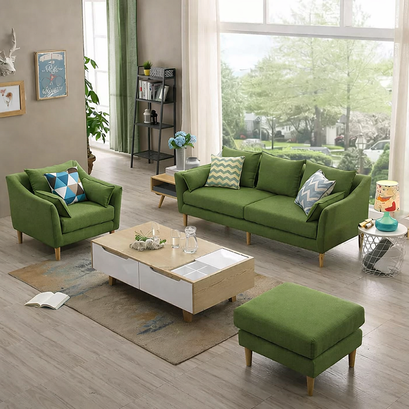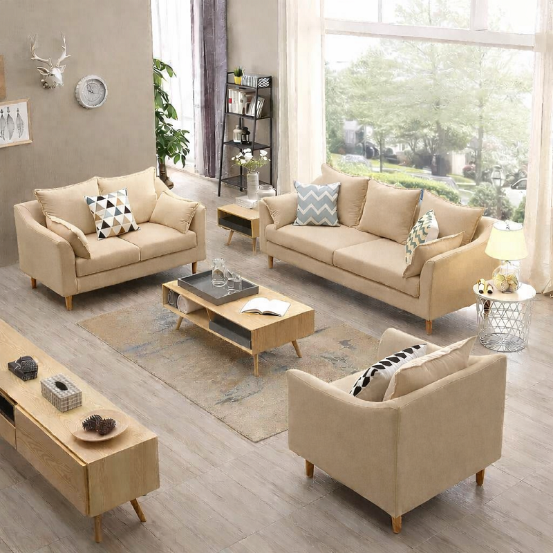 القماش من الكتان والقطن للشعور بملمس ناعم ومريح هيكل الكنبه متين ومستقر يتحمل الاوزان الثقيله سهل التنظيف تصميم راقى ومريح ومناسب لجميع الاذواق.
