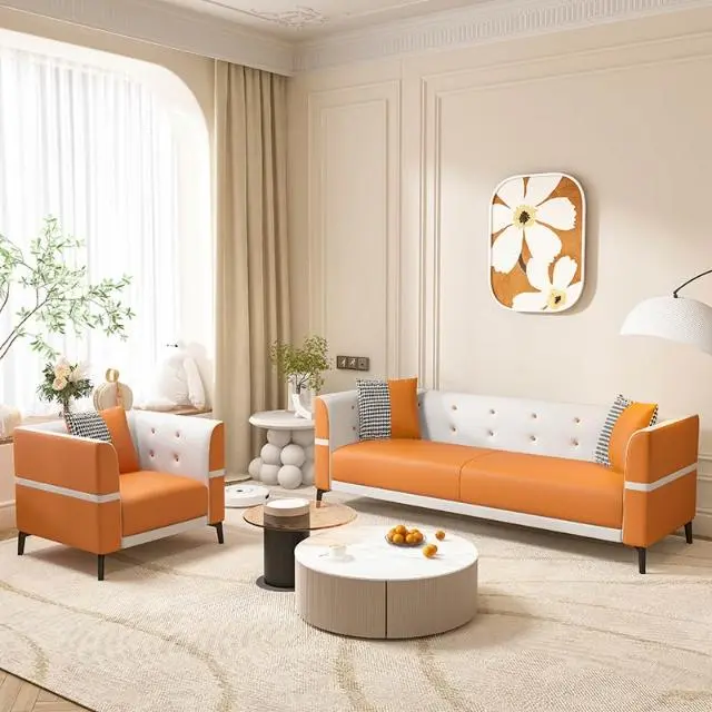 الطقم مصنوع من خشب هندسي وخشب زان روماني عالي الجودة، والمساند محشوة بإسفنج عالي الجودة، وطلاء جلدي أنيق.