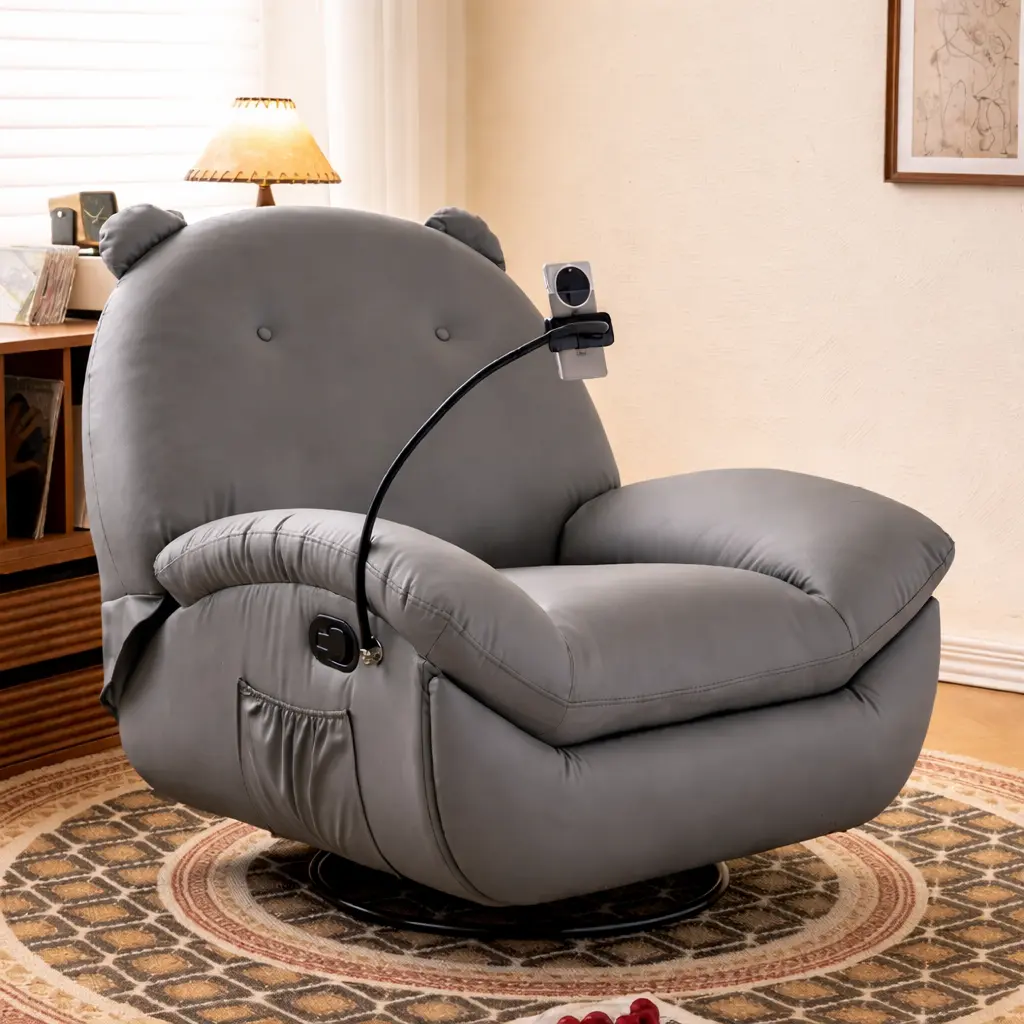 يوفر الكرسي تجربة جلوس مريحة بفضل تصميمه المدروس، حيث يدعم الجسم بطريقة متوازنة تساعد على الاسترخاء بعد يوم طويل. كما أن إمكانية الدوران تضيف مرونة في الاستخدام، مما يجعله مناسبًا لمتابعة التلفاز أو القراءة دون الحاجة لتغيير مكانه.