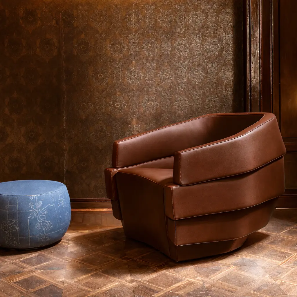 المقعد مبطن بإسفنج عالي الكثافة يساعد على توفير دعم مريح للجسم أثناء الجلوس، بينما يغطي الكرسي جلد عالي الجودة يمنح ملمسًا ناعمًا ومظهرًا مرتبًا يتناسب مع الأثاث العصري. هذه الخامات تجعل الكرسي خيارًا مناسبًا للاستخدام بجانب كنب مريح أو ضمن طقم كنب مودرن في غرفة الجلوس.