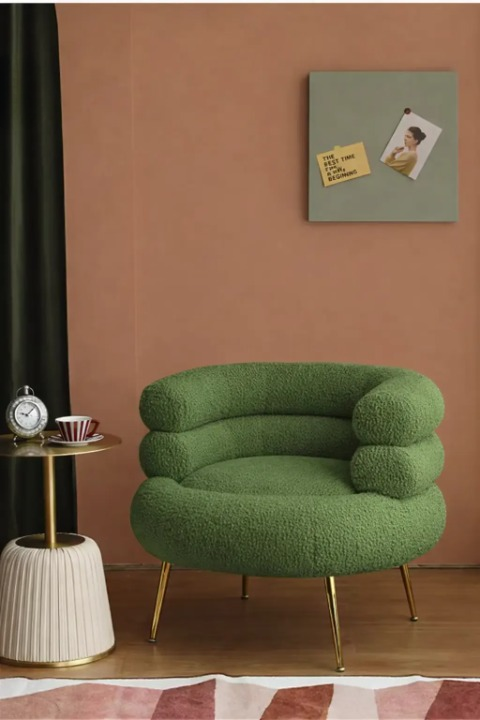 ومن الناحية العملية، يساعد التصميم المريح مع الحشوة المناسبة على جعل الجلسة أكثر هدوءًا في الاستخدام اليومي، سواء أثناء القراءة أو الجلوس القصير أو استقبال الضيوف. لذلك فهو لا يؤدي وظيفة جمالية فقط، بل يقدم تجربة استخدام مناسبة داخل المنزل المعاصر.