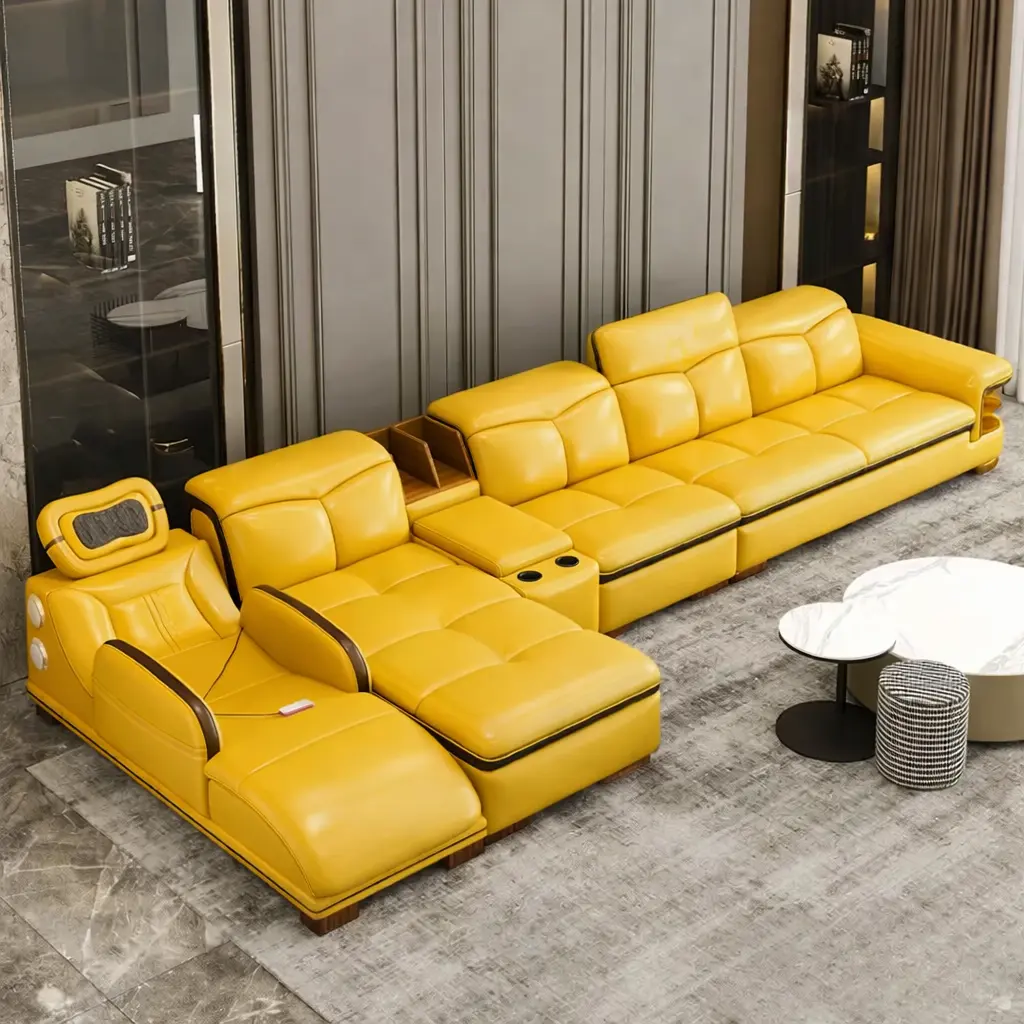 يعد كنب حرف ال هذا من الخيارات المناسبة لتنسيق كنب غرفة معيشة واسعة تجمع بين الراحة والمظهر الأنيق. التصميم العصري يساعد على استغلال المساحة بشكل عملي، حيث يوفر جلسة كبيرة تناسب العائلة والضيوف في الوقت نفسه.