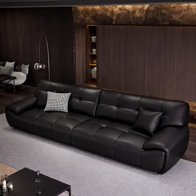 كنب فاخر بتصميم إيطالي عصري يجمع بين الأناقة والراحة، مصنوع من خشب زان روماني عالي الجودة ومغطى بجلد إيطالي فاخر. يوفر هذا الكنب لمسة من الفخامة لغرفة المعيشة مع إمكانية الاختيار بين عدة مقاسات لتناسب احتياجاتك. يتميز بسهولة التنظيف بضغطة مسحة بسيطة ويأتي بضمان لمدة سنتين ضد عيوب التصنيع في دول مجلس التعاون الخليجي. متوفر بألوان متعددة ليناسب جميع الأذواق.