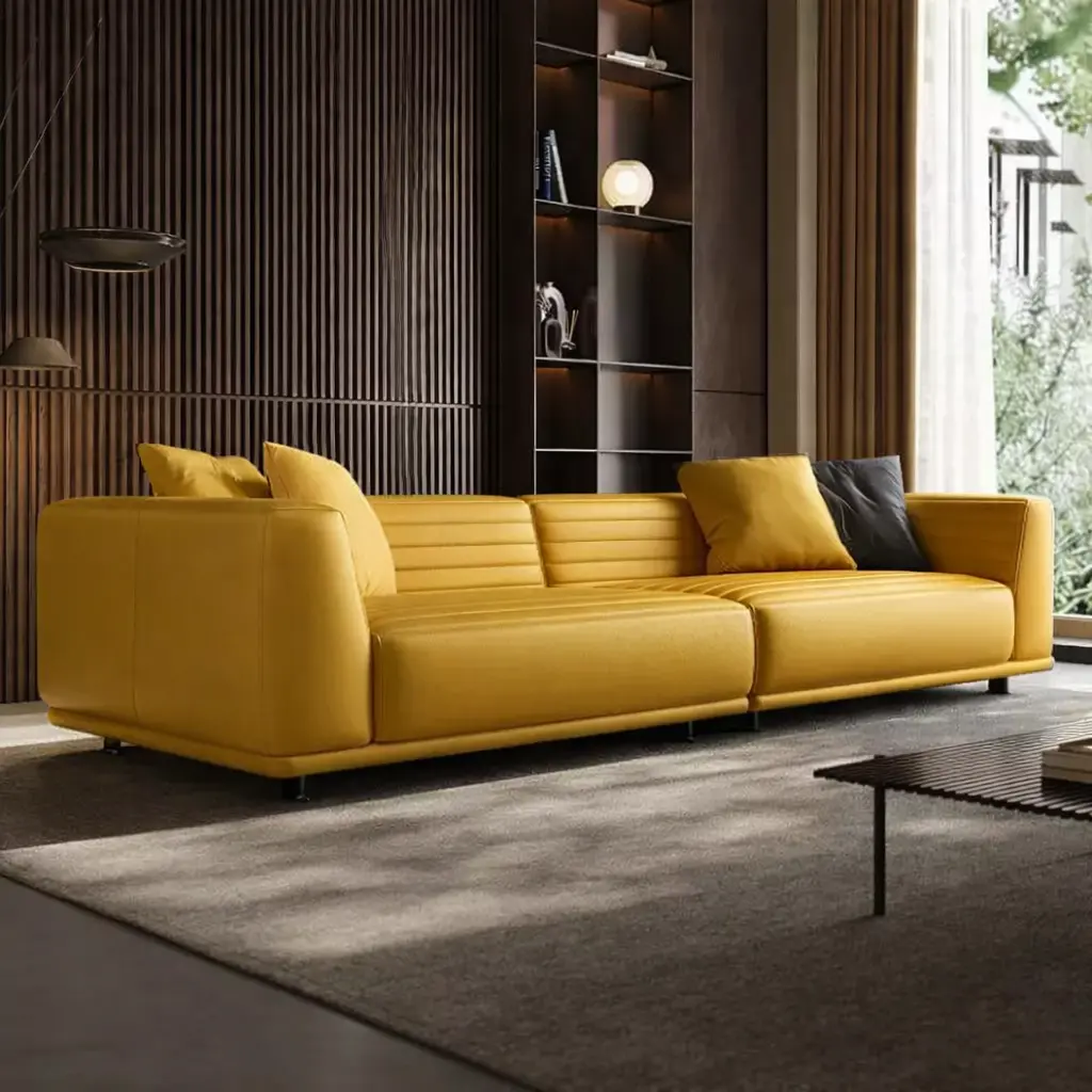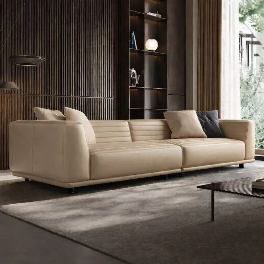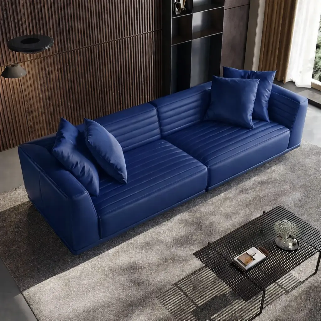 تم تصنيع هذه الأريكة بعناية لتخدم الاستخدام المنزلي بشكل جيد. التنجيد من الجلد الإيطالي يمنح المظهر الفاخر الذي ينسجم مع الديكورات الحديثة والكلاسيكية، كما أن مقاومته للخدوش والبقع تساعد على الحفاظ على شكل الأريكة لفترة أطول. لهذا تعد خيارًا موفقًا ضمن فئة كنب حديث يناسب المساحات التي تحتاج إلى قطعة واضحة الأناقة من دون تفاصيل زائدة.
