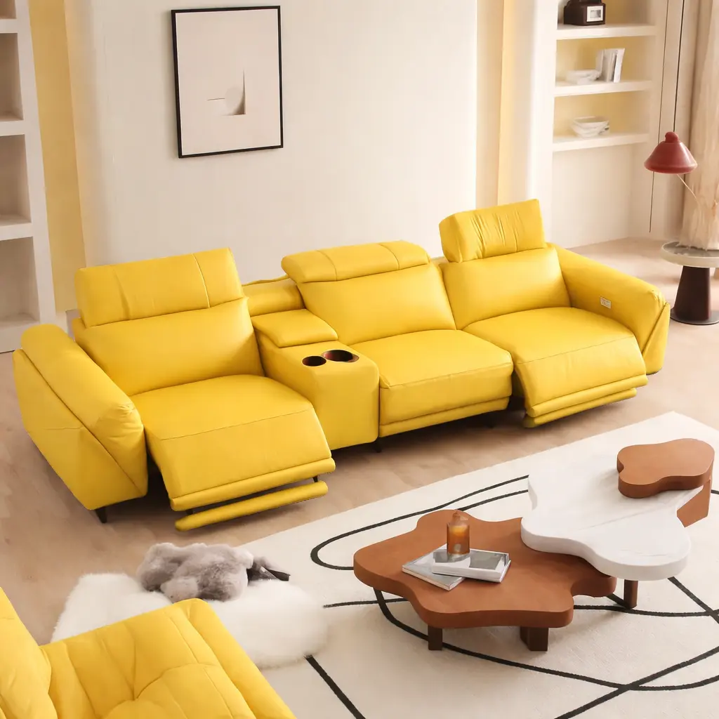 تم تصنيع الكنب من خشب هندسي عالي الجودة وخشب زان روماني، مما يمنحه التحمل والقوة اللازمة. يتميز بمحشو من الإسفنج عالي الكثافة والمرونة، مغطى بجلد إيطالي فاخر ذو جودة عالية. يتحمل الجلد الحرارة ومقاوم للتآكل. ولزيادة الدعم، يأتي الكنب بقاعدة معدنية فولاذية قوية.