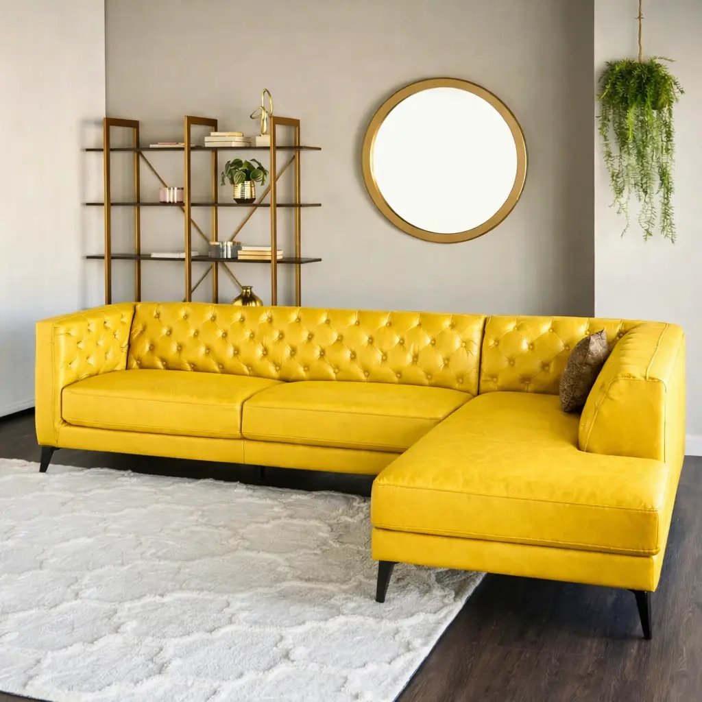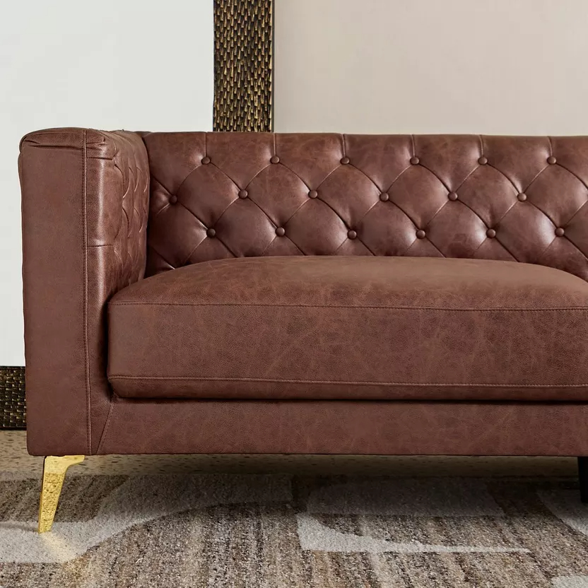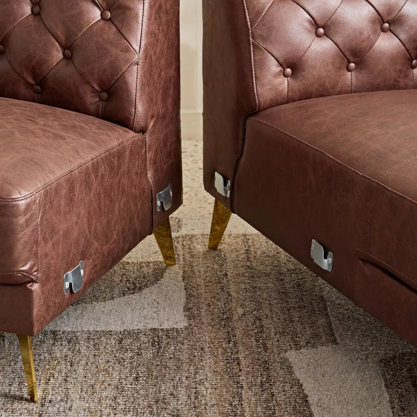 المقاعد مبطنة بإسفنج عالي الكثافة يمنح الجلسة دعمًا مريحًا للجسم، بينما يغطي الكنب جلد صناعي عالي الجودة يوفر ملمسًا مريحًا ومظهرًا أنيقًا داخل غرفة المعيشة. هذه التفاصيل تجعل الكنب مناسبًا لمن يبحث عن كنب مريح للاستخدام الطويل.