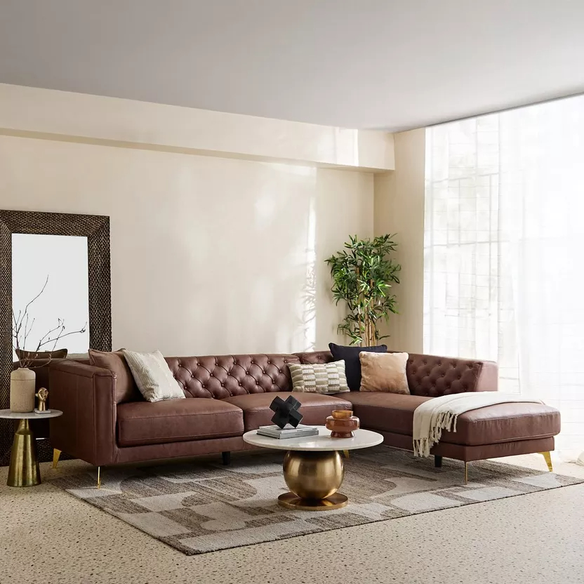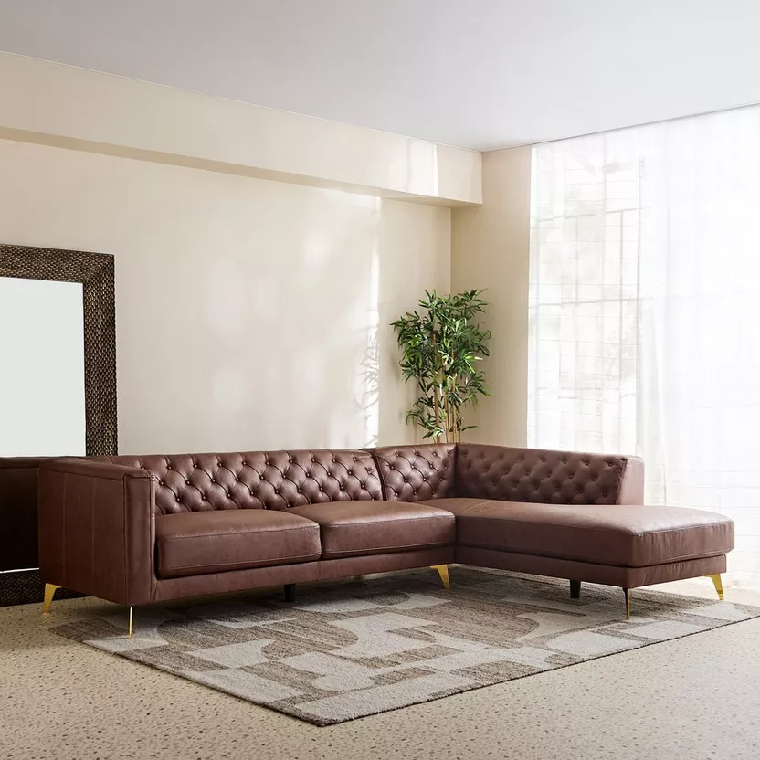 التصميم الركني يساعد على استغلال الزوايا داخل الغرفة بطريقة عملية، مما يمنح المساحة ترتيبًا أفضل مع توفير حركة مريحة داخل الغرفة. كما يمكن تنسيقه بسهولة مع طاولة قهوة ليشكل طقم كنب مودرن متكامل داخل غرفة الجلوس.