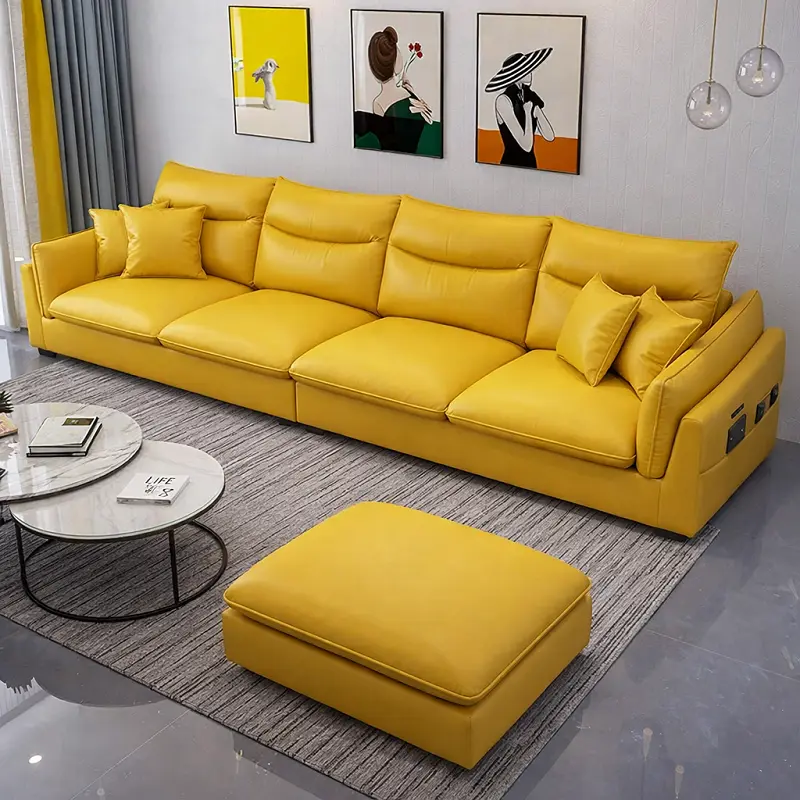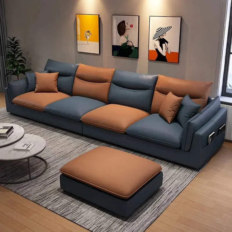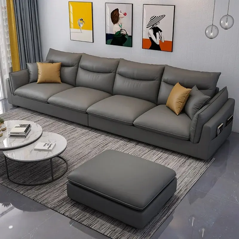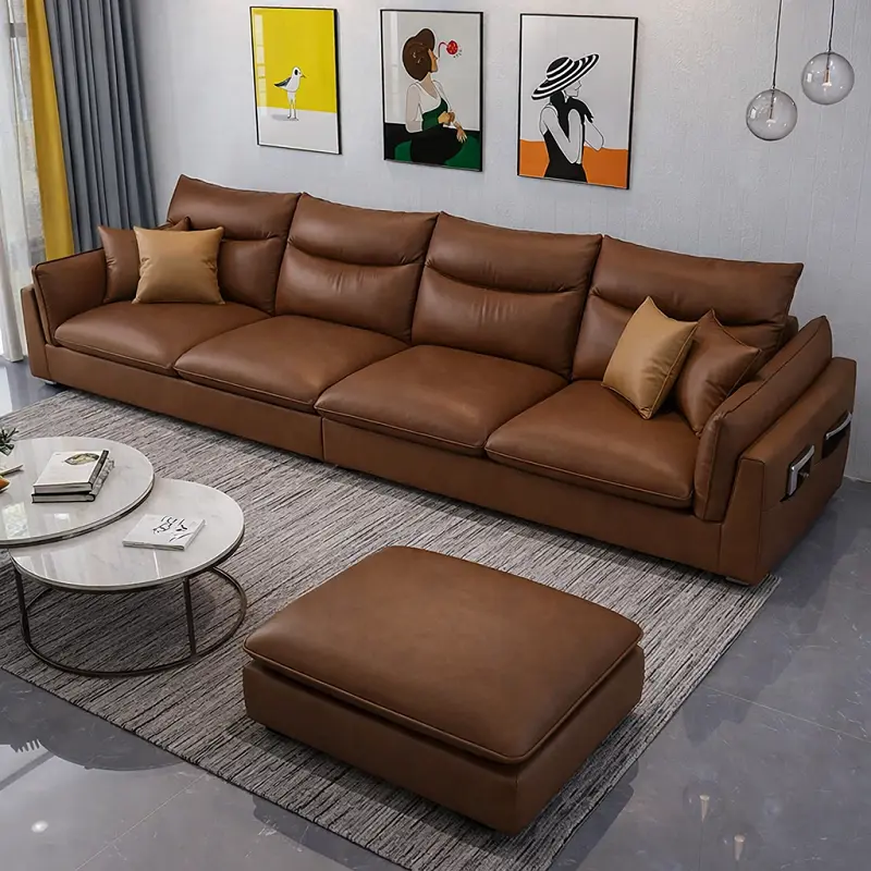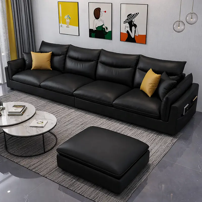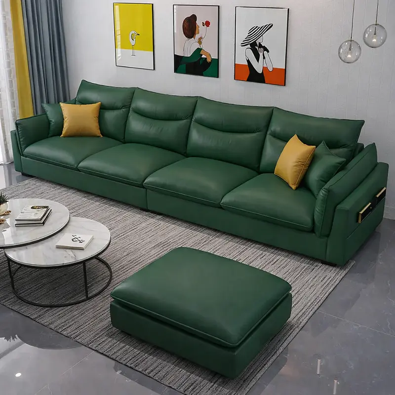 يتمتع الكنب بتفاصيل دقيقة من جلد عالي الجودة، مما يعزز من جاذبيته ويجسد الفخامة بأبهى صورة. كما يتوفر بمجموعة متنوعة من الألوان لتناسب تصميم منزلك.