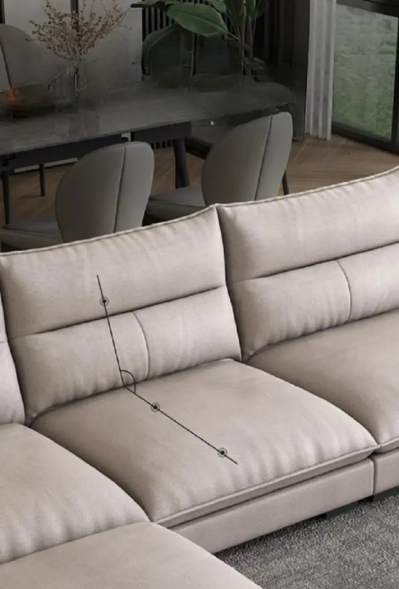 استمتع بأوقات الراحة الطويلة على هذا الكنب الزاوي الذي يتميز بوسائد مبطنة بالإسفنج عالي الكثافة والمرونة. يضمن الجلوس الراحة الفائقة والدعم للظهر، مما يجعله خيارًا مثاليًا للأوقات الاستراحة والاستمتاع بلحظات الجودة في المنزل.