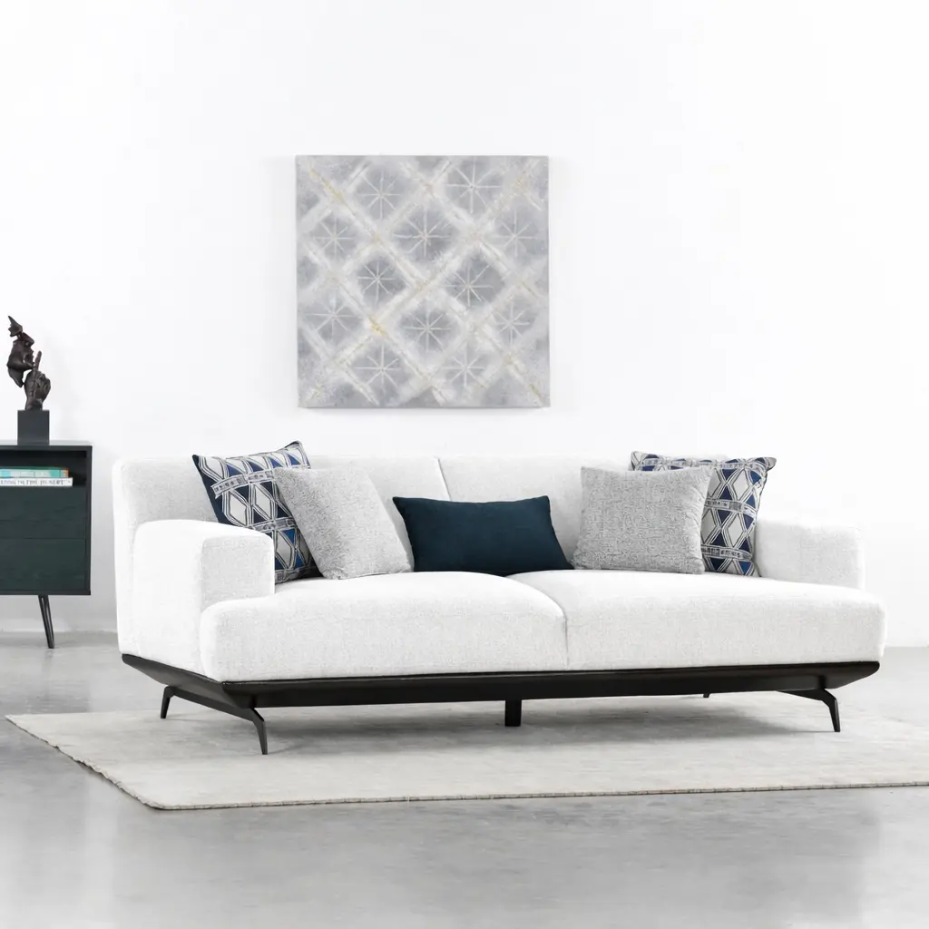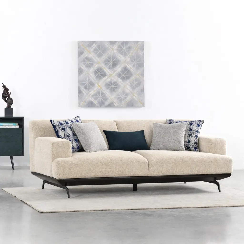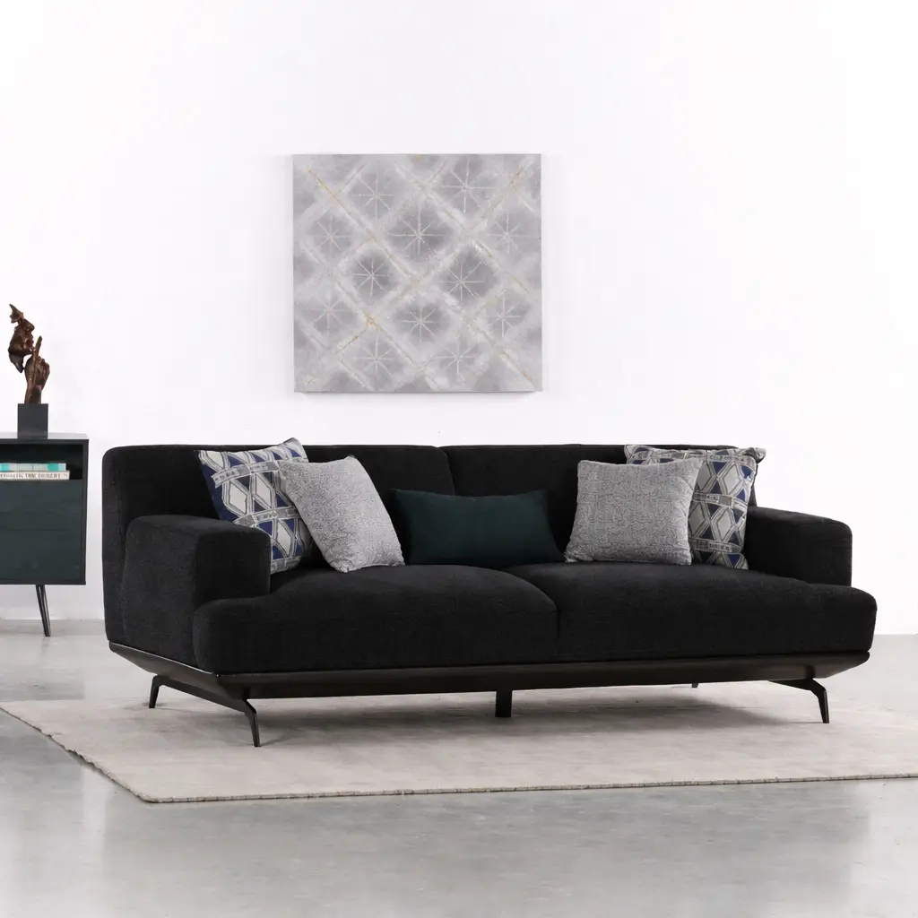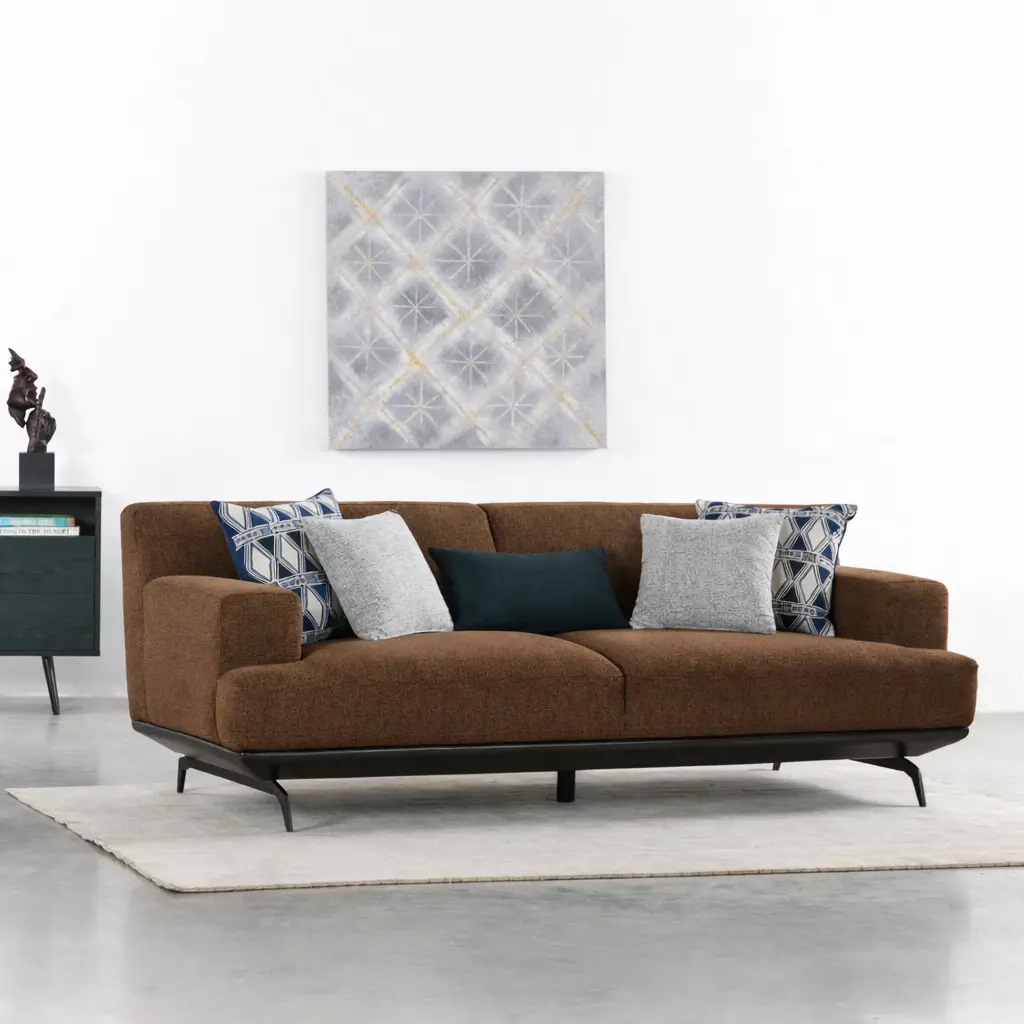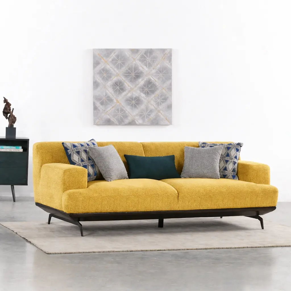 تم تصنيع الهيكل من خشب معزز يمنح الكنبة ثباتًا مناسبًا مع مرور الوقت، مع الاعتماد على خامات عالية الجودة في التنجيد لضمان تحمل الاستخدام اليومي. كما تأتي الأرجل بتصميم معدني قوي يضيف استقرارًا إضافيًا ويكمل الشكل العام للكنبة بطريقة متناسقة.