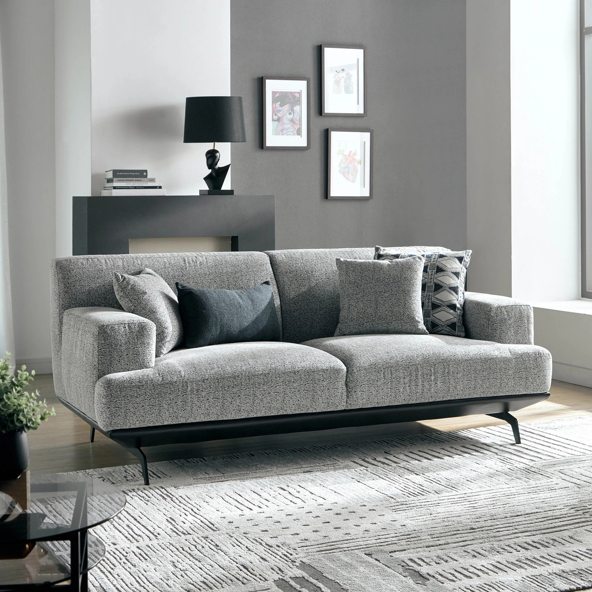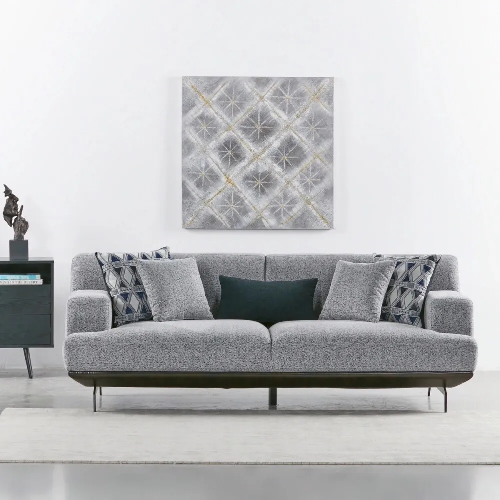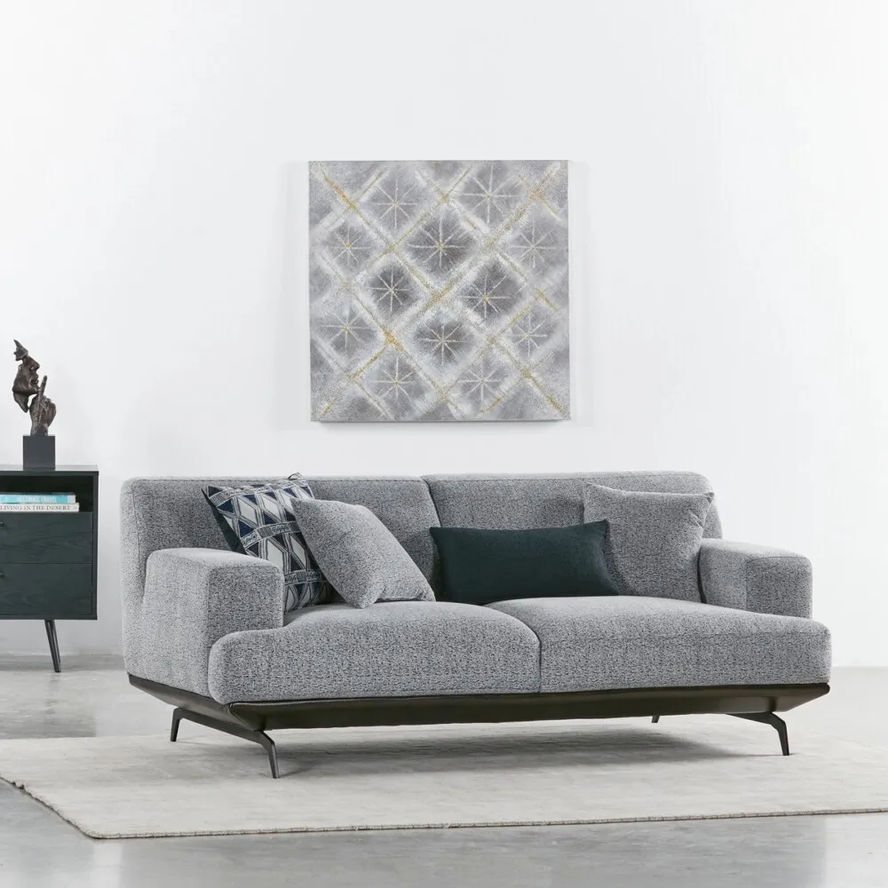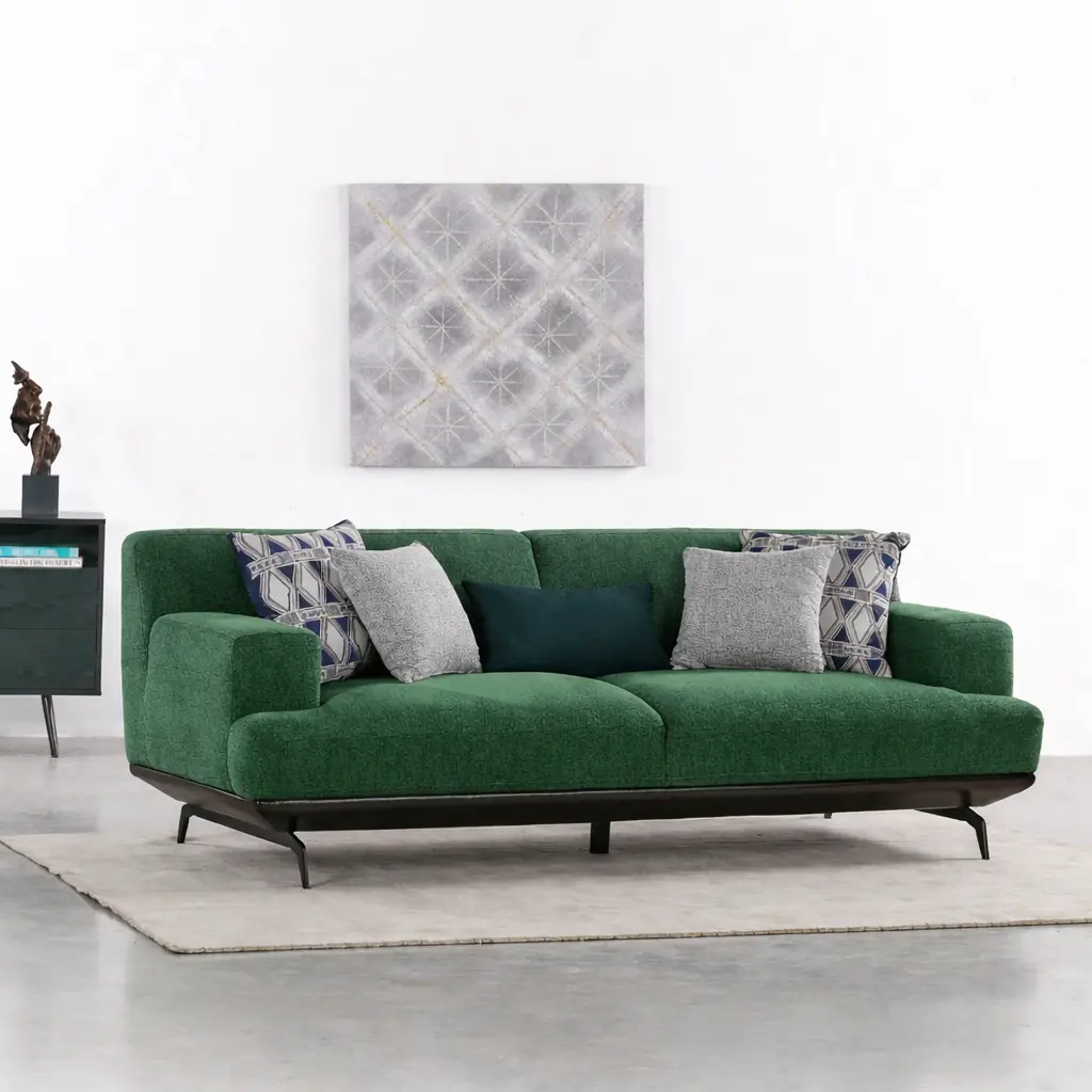 تم تصنيع الهيكل من خشب معزز يمنح الكنبة ثباتًا مناسبًا مع مرور الوقت، مع الاعتماد على خامات عالية الجودة في التنجيد لضمان تحمل الاستخدام اليومي. كما تأتي الأرجل بتصميم معدني قوي يضيف استقرارًا إضافيًا ويكمل الشكل العام للكنبة بطريقة متناسقة.