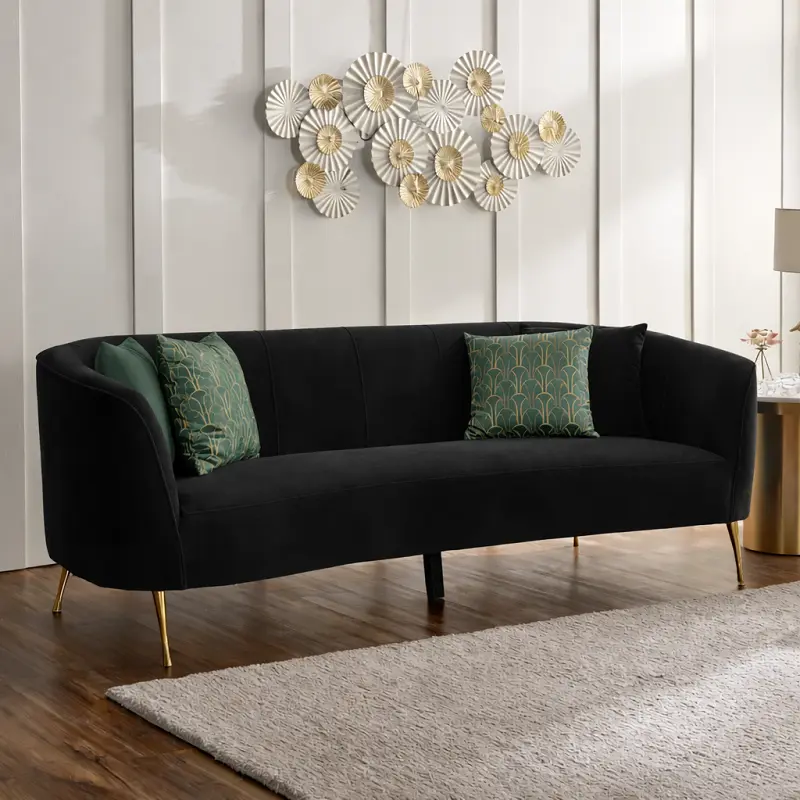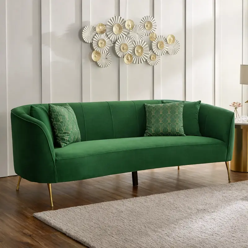 يتميز كنب مخملي هذا بتصميمه الفريد الذي يجمع بين الأناقة والراحة. فهو مصمم بعناية فائقة ليوفر لك تجربة جلوس لا مثيل لها، حيث يتمتع بمسند ظهر مريح ووسادات مبطنة بشكل فريد لدعم الظهر والجسم بشكل مثالي.