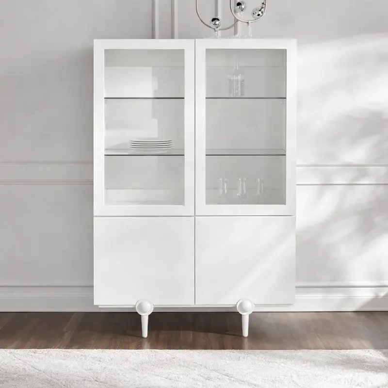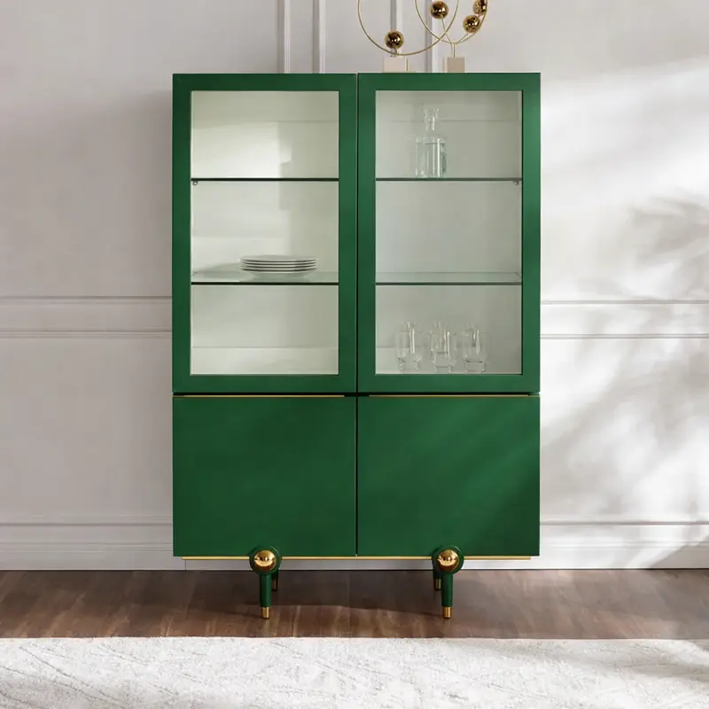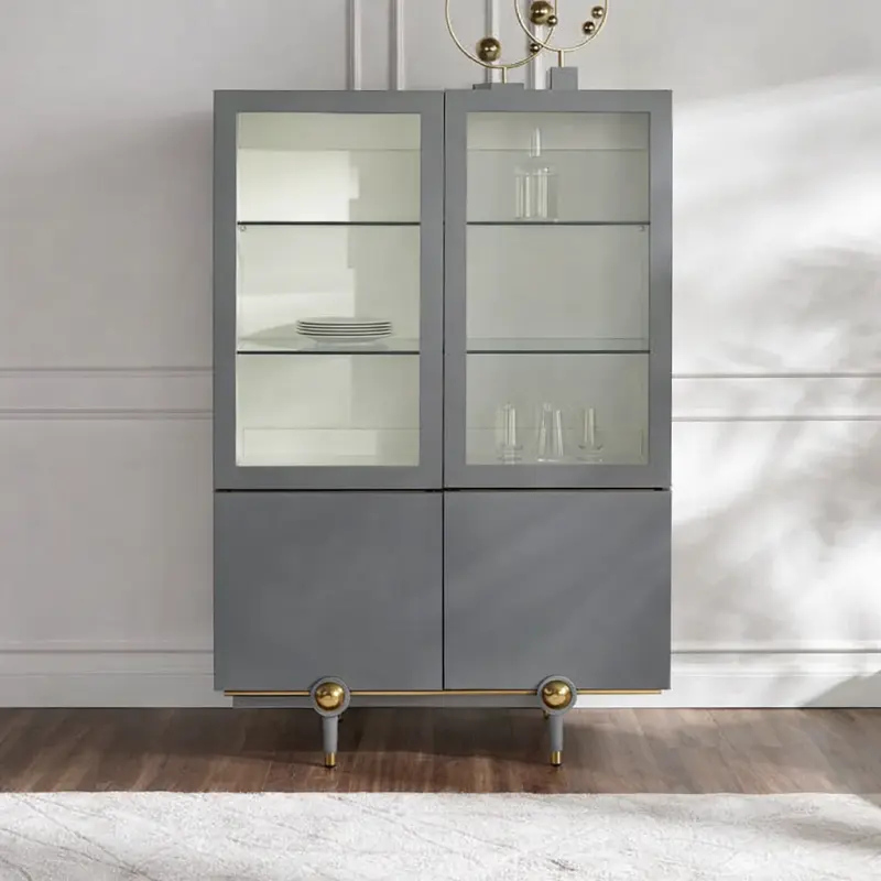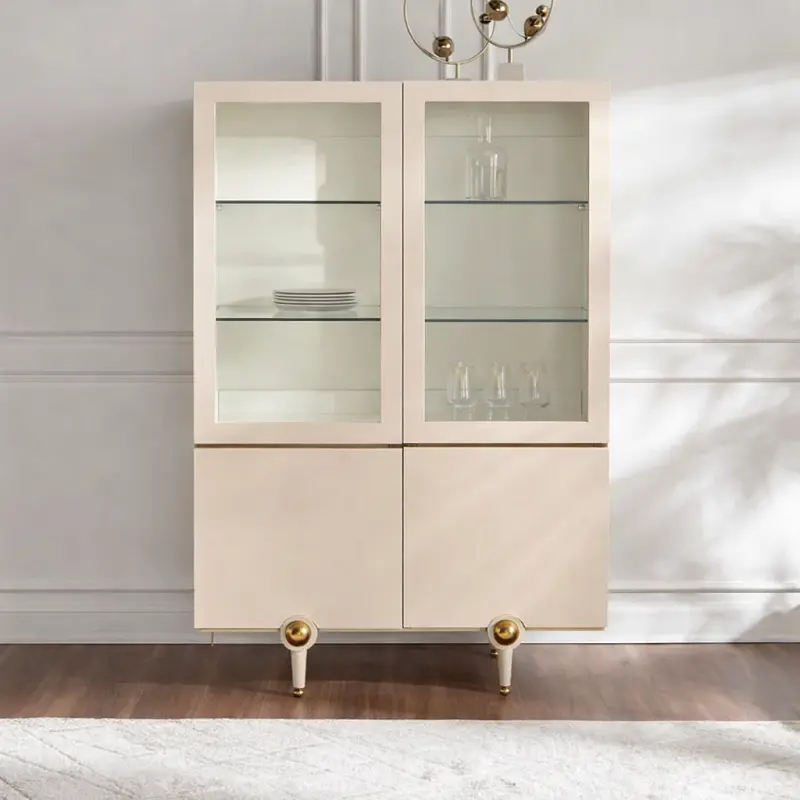 تأتي هذه الخزانة بمظهر رائع ومودرن، مما يبرز جمال المكان الذي توضع فيه. تتميز بمساحة وفيرة داخلية لتوفير مساحة كافية لتخزين جميع أنواع المشروبات والأواني الزجاجية. اللمسة النهائية الزجاجية تعكس الأنوثة والرقي، مما يجعلها مثالية للديكورات الداخلية المتنوعة.