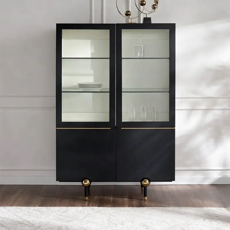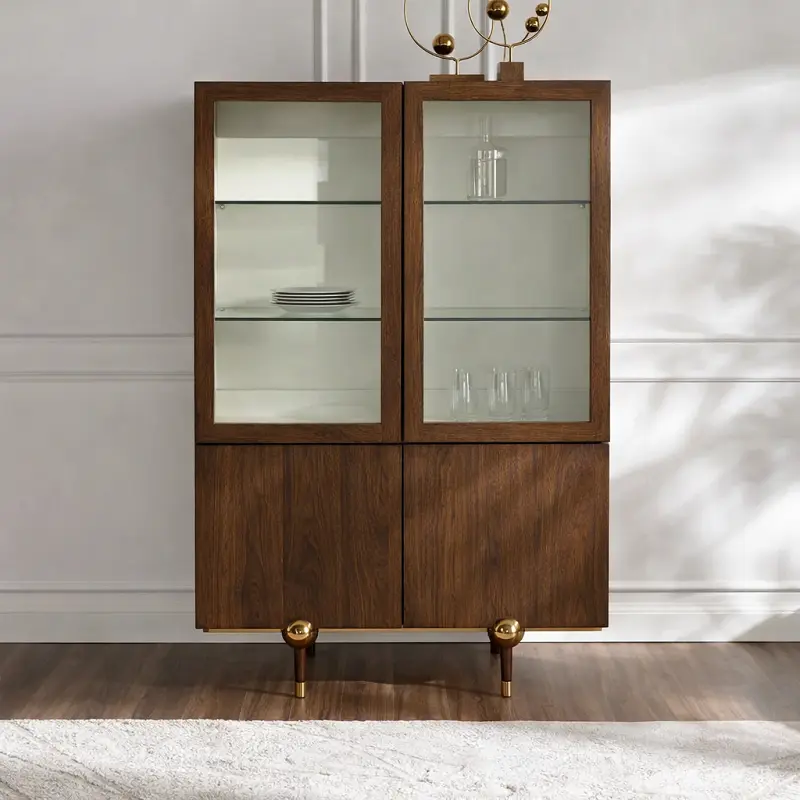 تم تصنيع هذه الخزانة باستخدام خشب هندسي وخشب زان روماني عالي الجودة الذي يضمن تحملها لفترة طويلة، وتأتي مع لمسات من الستيل الصلب المذهب الذي يعزز جودتها ويمنحها مظهرًا فاخرًا. يتميز الزجاج المقوي المقاوم للصدمات بأنه يوفر الحماية للأواني الزجاجية الثمينة.