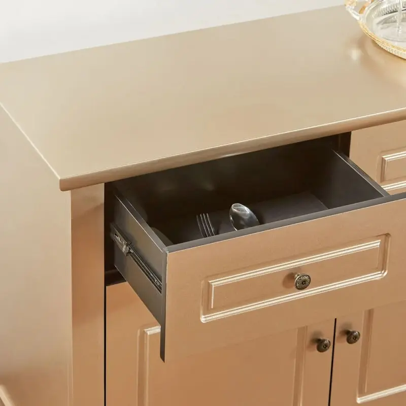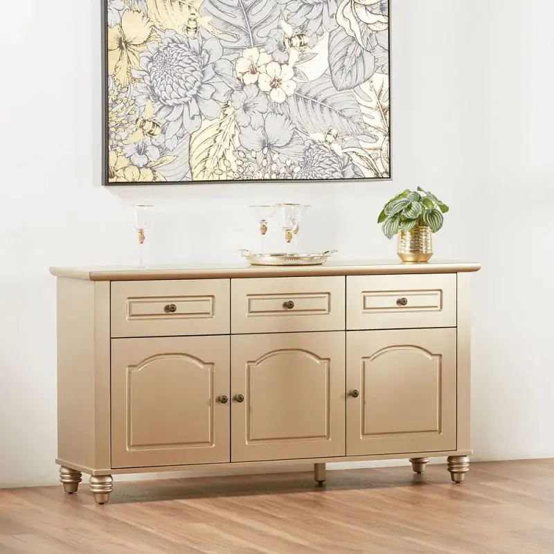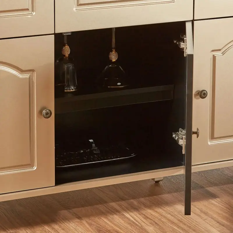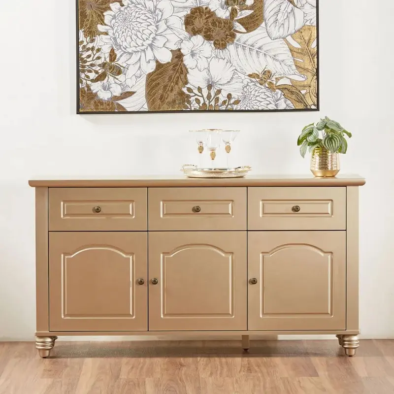 تم تصنيع البوفيه من خشب مدعوم بهيكل من خشب زان متين عالي الجودة، وهو ما يمنح القطعة قوة وثباتًا مناسبين للاستخدام اليومي داخل المنزل. هذه الخامات تساعد على الحفاظ على شكل القطعة لفترة طويلة مع الاستخدام المستمر.