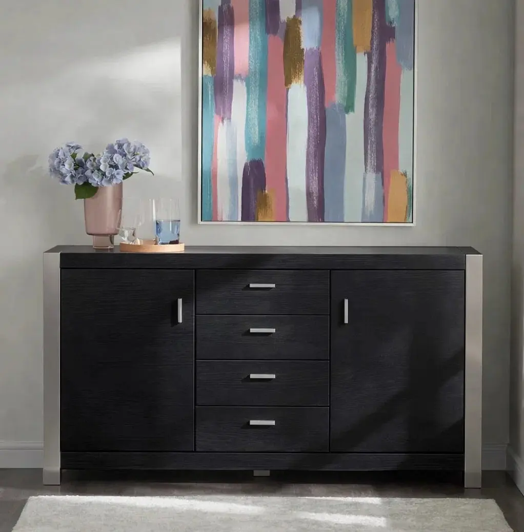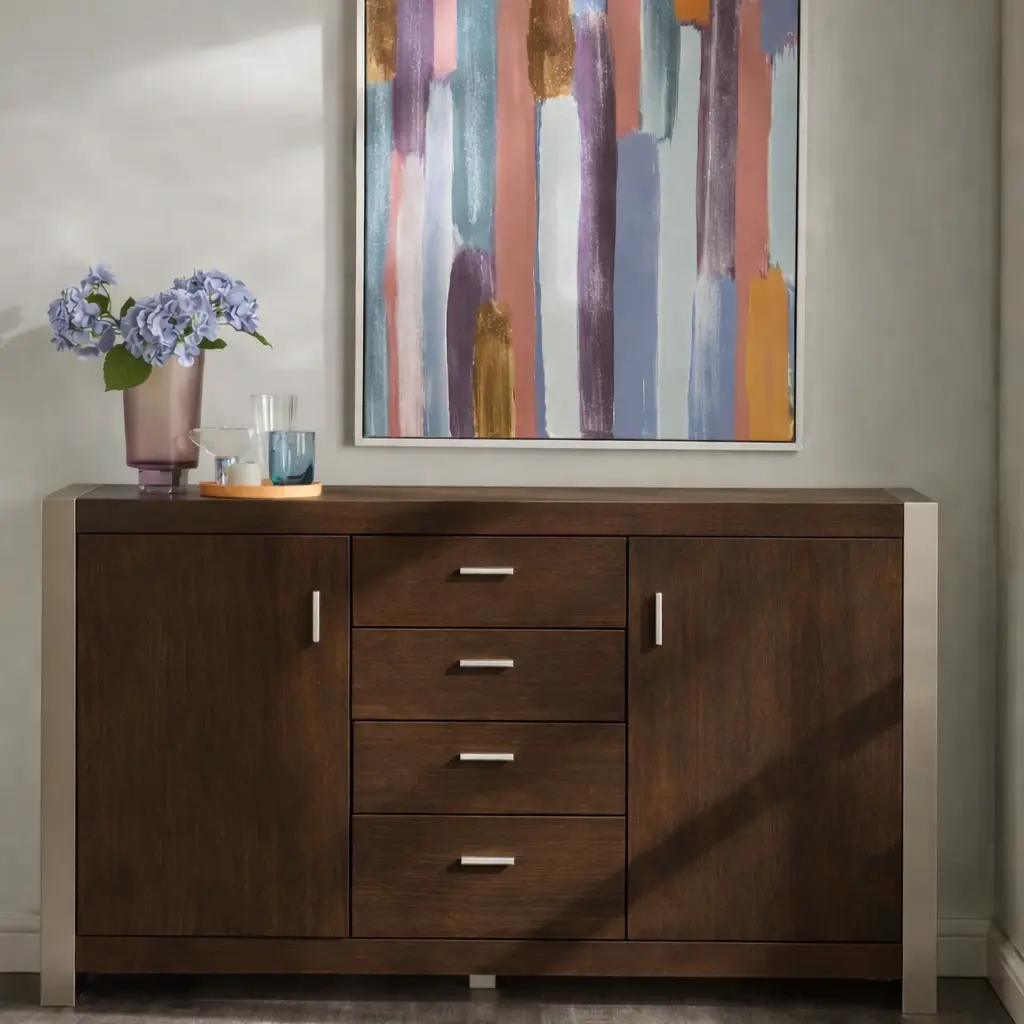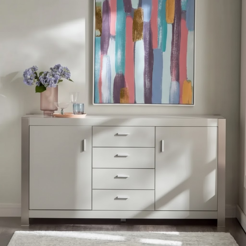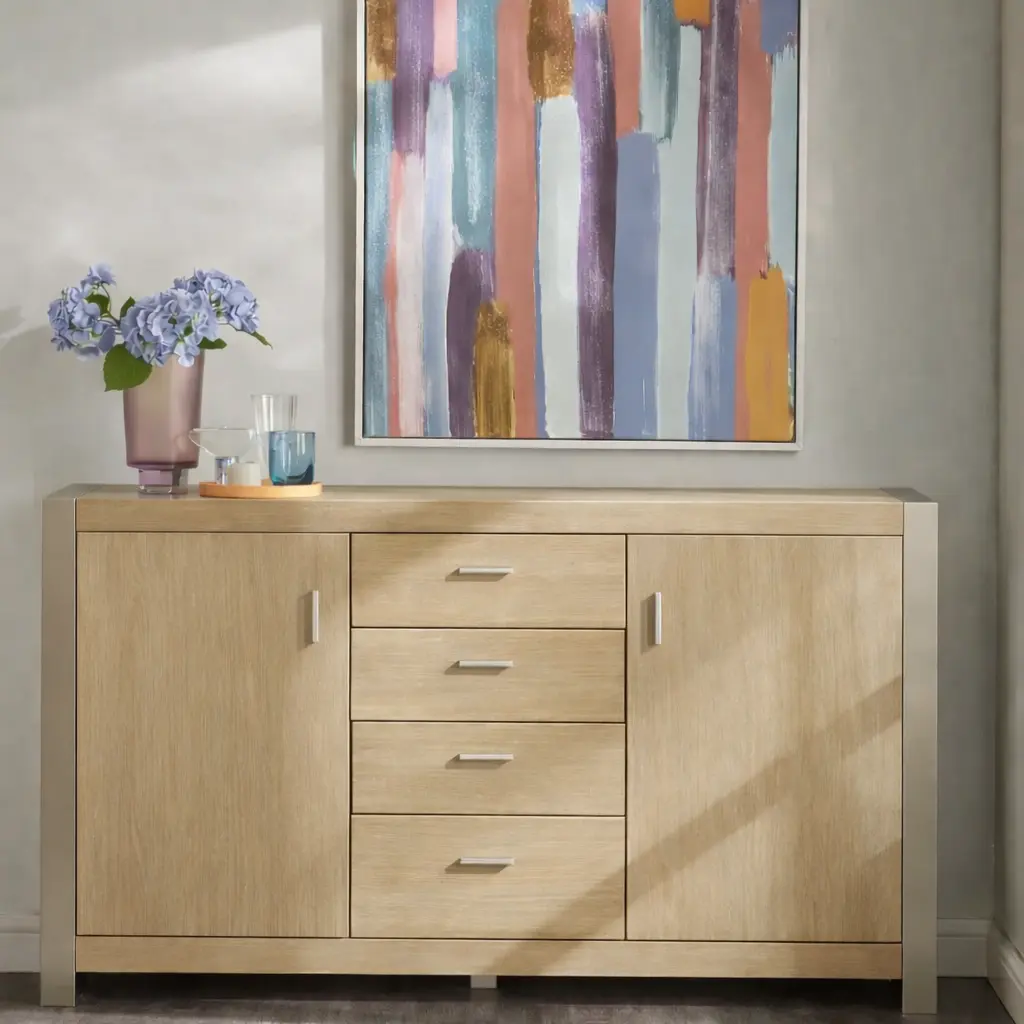 يأتي البوفيه مزودًا بأربعة أدراج وبابين، ما يوفر مساحة تخزين واسعة ومنظمة. هذا التقسيم يساعد على ترتيب الأغراض الصغيرة والكبيرة بشكل منفصل، لتسهيل الوصول إليها عند الحاجة.
