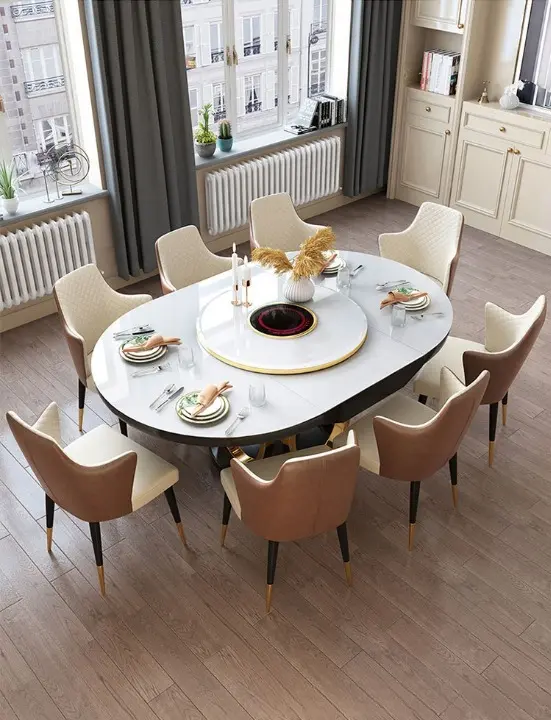 | المقاس | 160 سم مع 6 كراسي, 180 سم مع 8 كراسي |