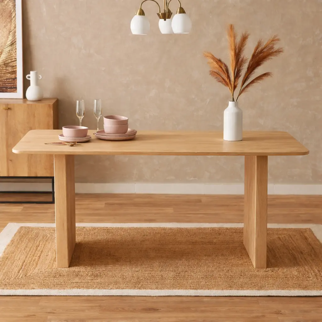 تم تصنيع هذه طاولة طعام خشب باستخدام خشب عالي الجودة مع خشب زان متين عالي الجودة، وهو ما يمنح الطاولة قوة تحمل مناسبة للاستخدام اليومي المستمر. هذه الخامات تساعد على الحفاظ على استقرار الطاولة وثباتها مع مرور الوقت.