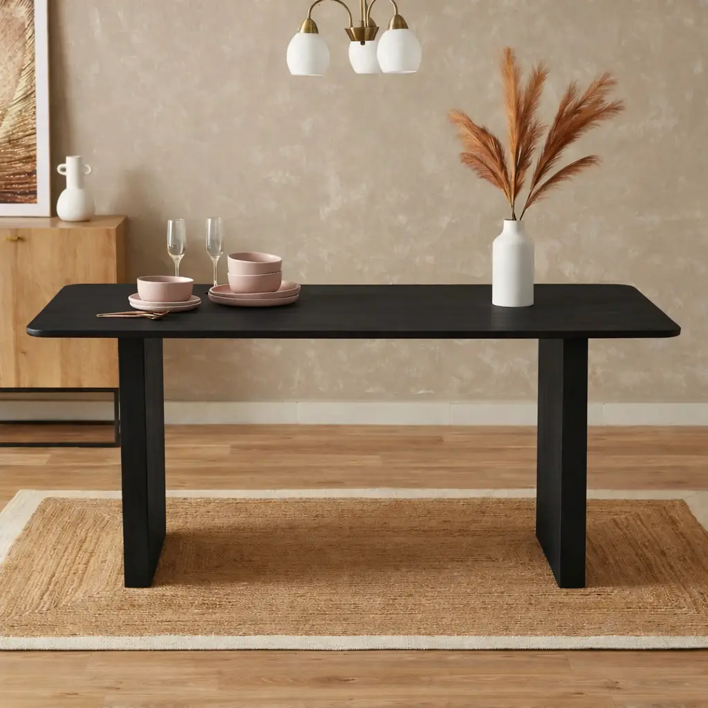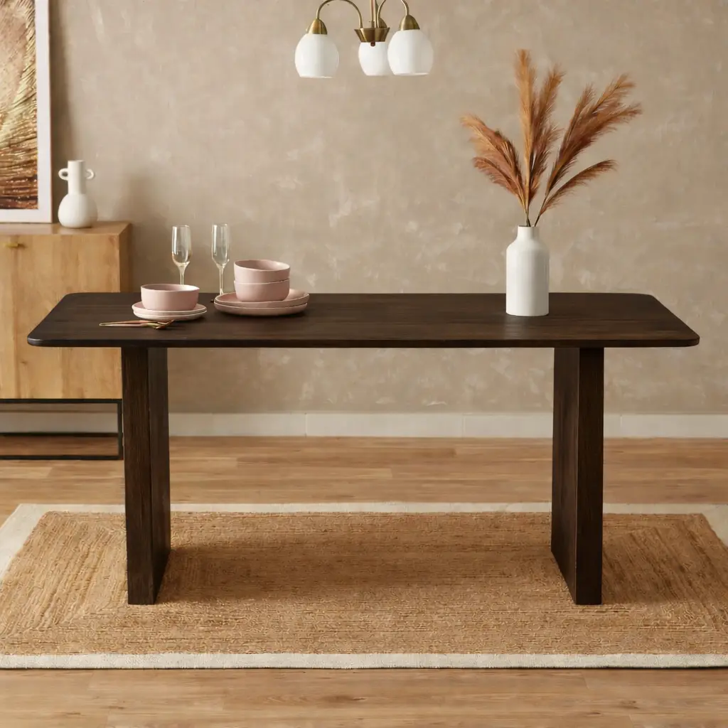 يتميز التصميم بخطوط بسيطة تساعد على انسجام الطاولة مع مختلف أنماط الديكور الداخلي، سواء في المساحات العصرية أو في الغرف ذات الطابع الهادئ. كما يمكن تنسيقها بسهولة مع خزائن الطعام أو وحدات التخزين لتكوين مساحة متكاملة داخل غرفة الطعام.