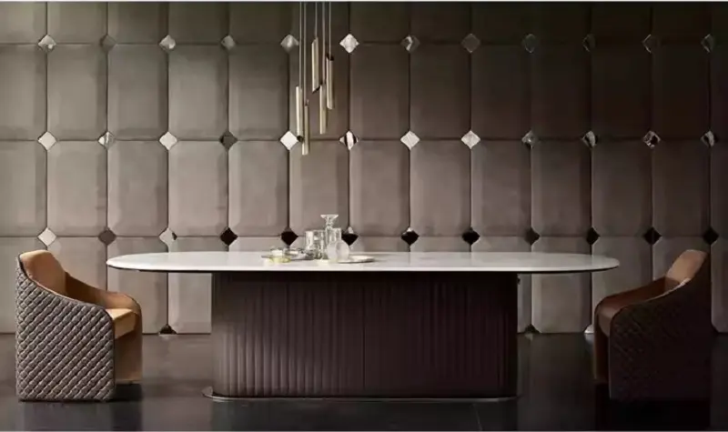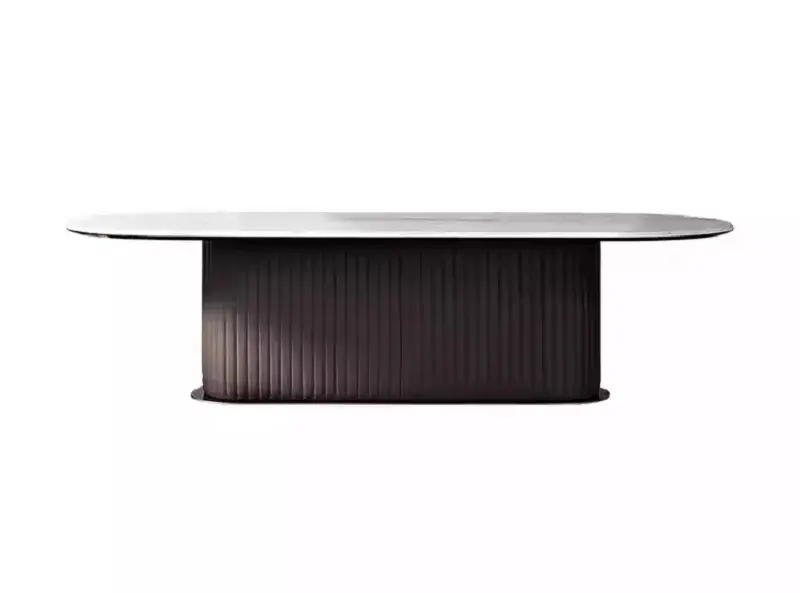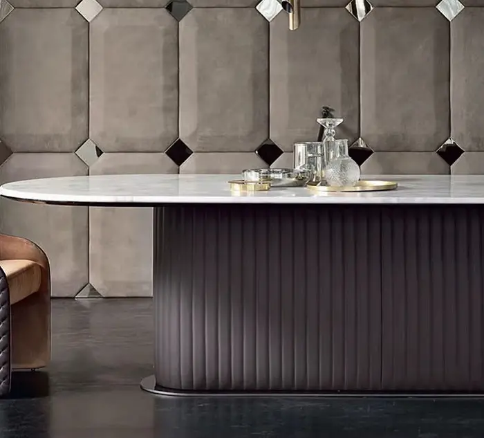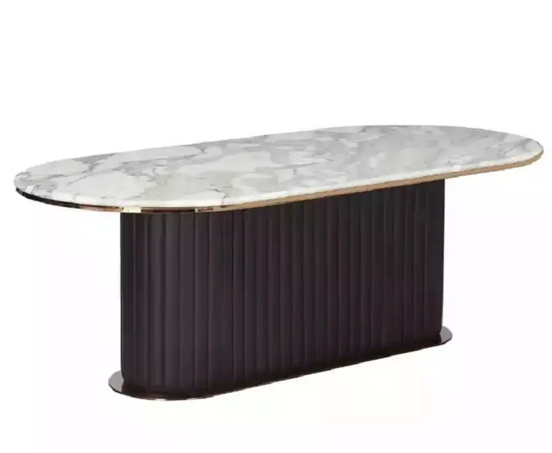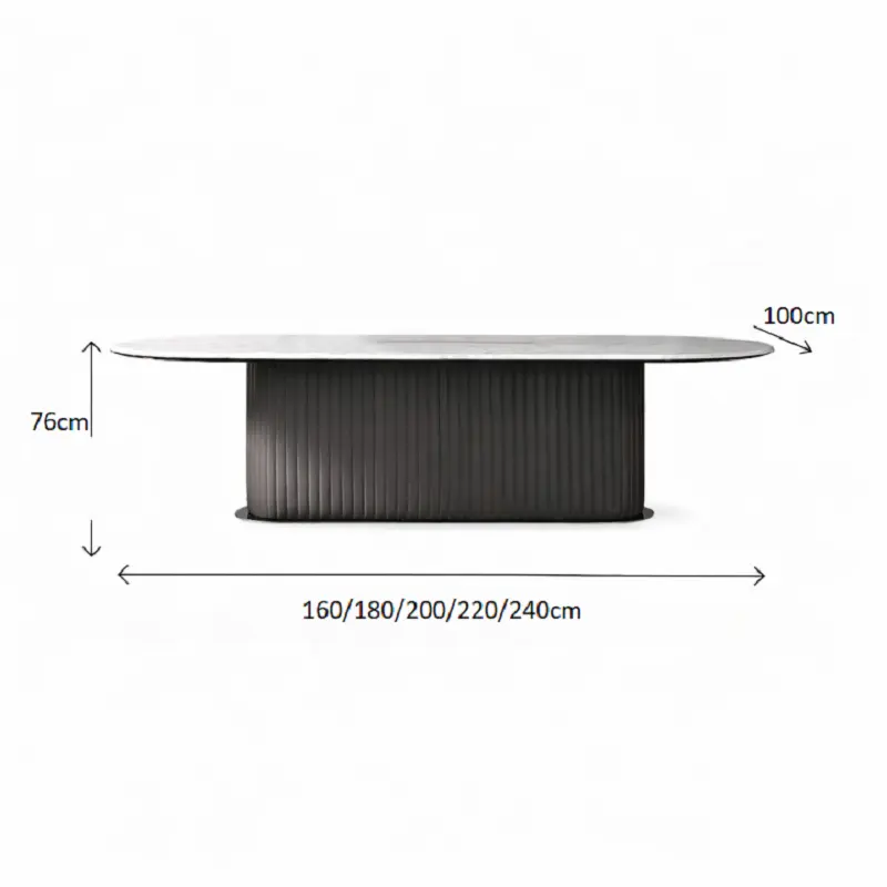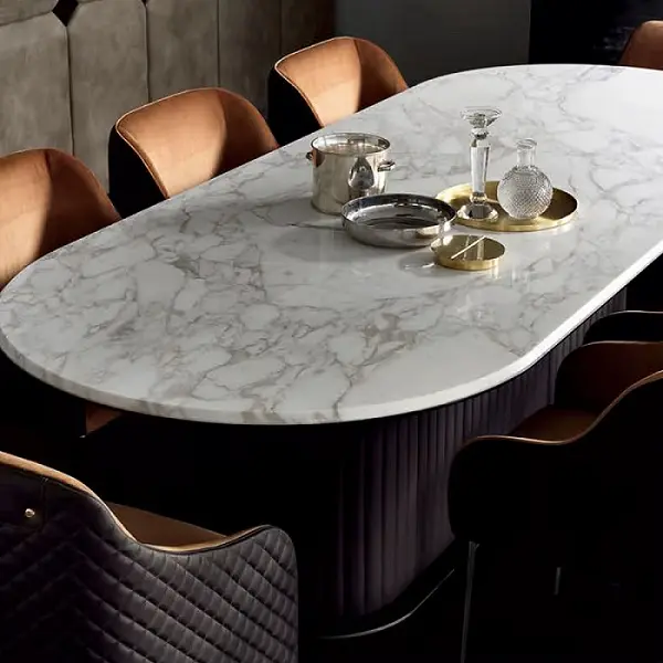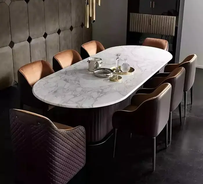 تعد هذه القطعة من طاولات الطعام التي تجمع بين الراحة في الاستخدام والشكل العصري المناسب لمختلف أنماط الديكور. التصميم البيضاوي يمنح مرونة أكبر في توزيع الجلوس ويقلل من الزوايا الحادة، مما يجعلها خيارًا مناسبًا للعائلات. كما أن السطح الرخامي يبرز بشكل أنيق، لتكون ضمن الخيارات المميزة لمن يبحث عن طاولة طعام رخام تجمع بين العملية والمظهر المتوازن.