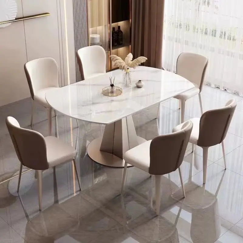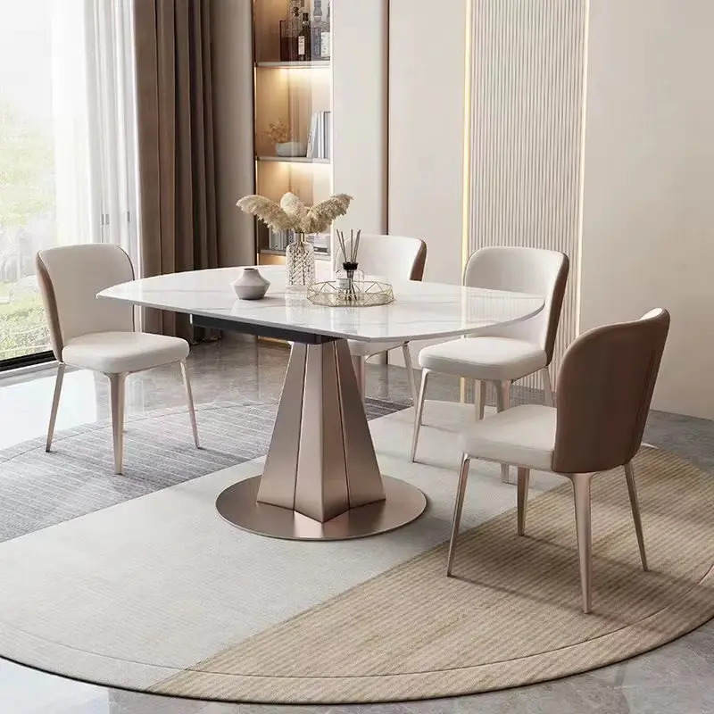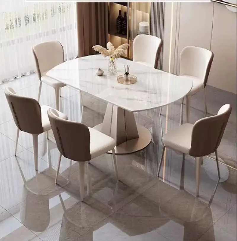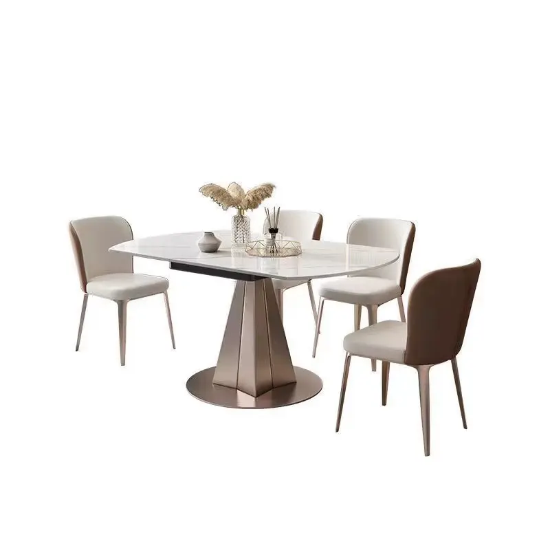 هيكل الطاولة مصنوع من خامة معدنية عالية الجودة، ما يمنح الطاولة ثباتًا جيدًا أثناء الاستخدام، مع سطح رخامي فاخر عالي الجودة