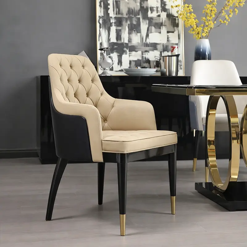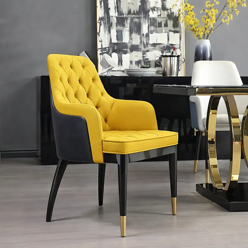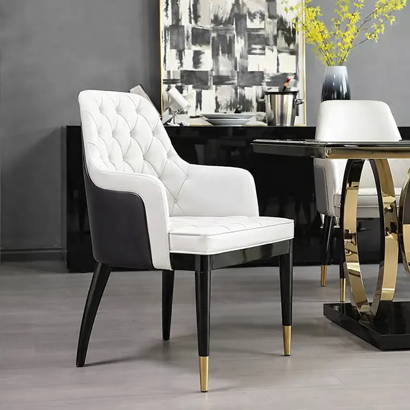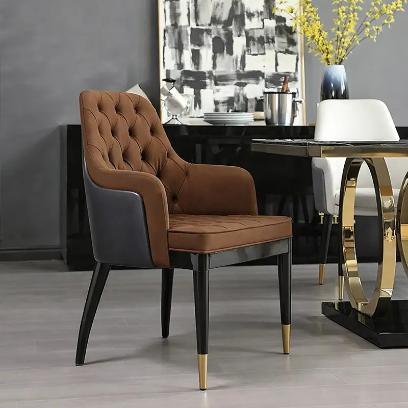 طاولة الطعام مصنوعة من سطح رخامي عالي الجودة مع إطار فولاذي معدني صلب، مما يجعلها متينة ومقاومة للصدأ.