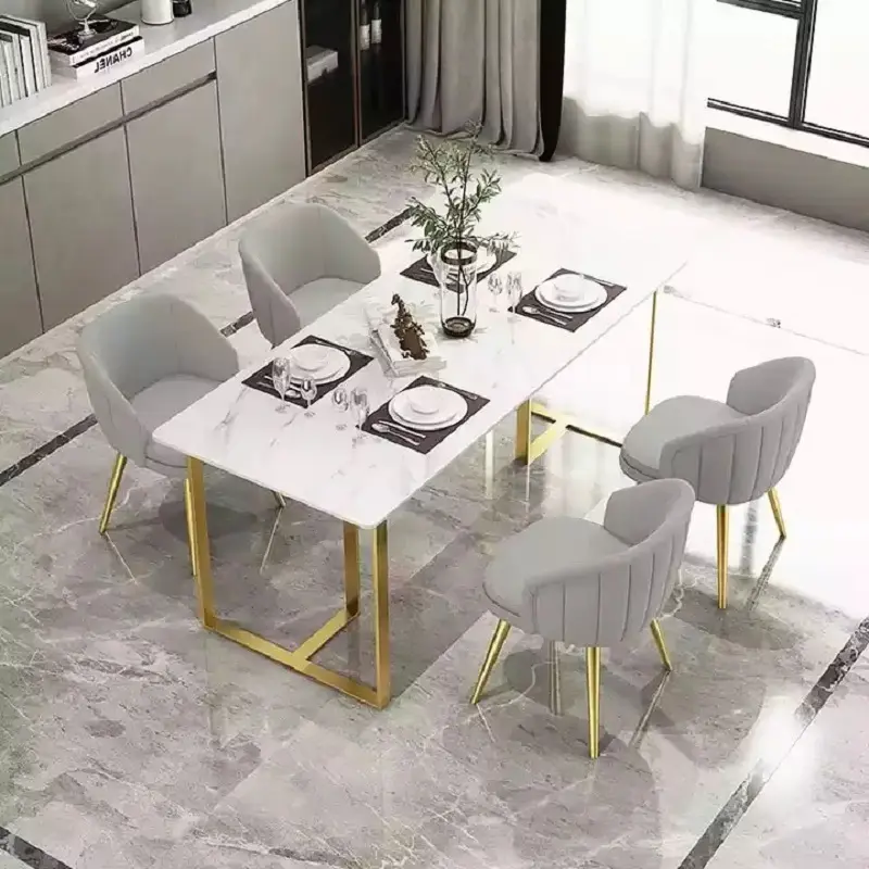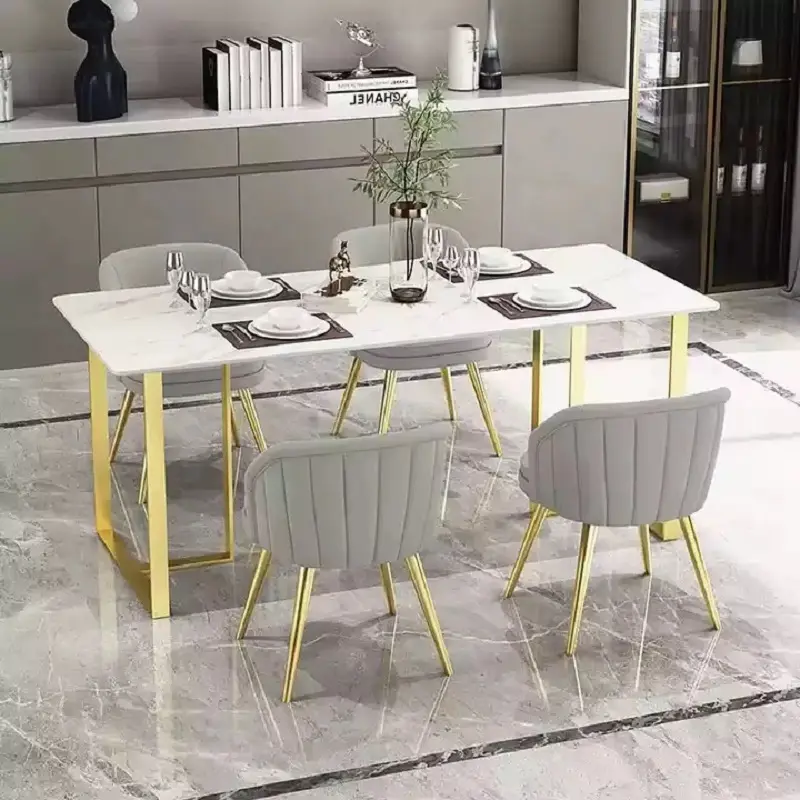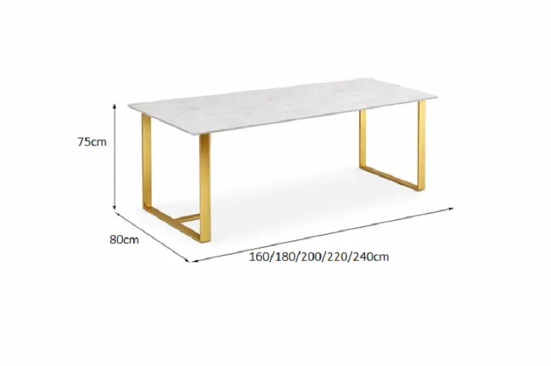 تعد طاولة طعام بتصميمها المستطيل خيارًا مثاليًا لكل من يبحث عن التوازن بين الأناقة والعملية داخل المنزل. هذا النموذج من طاولات الطعام يتميز بسطح من الرخام يمنح مظهرًا راقيًا، مع هيكل معدني متين يوفر ثباتًا عاليًا للاستخدام اليومي داخل غرفة الطعام.