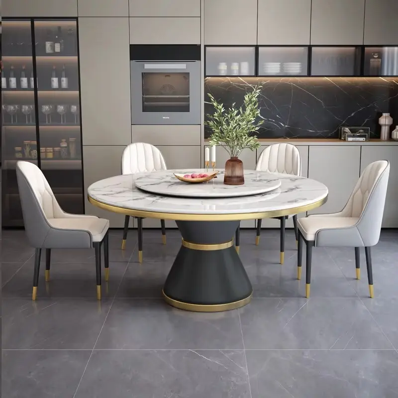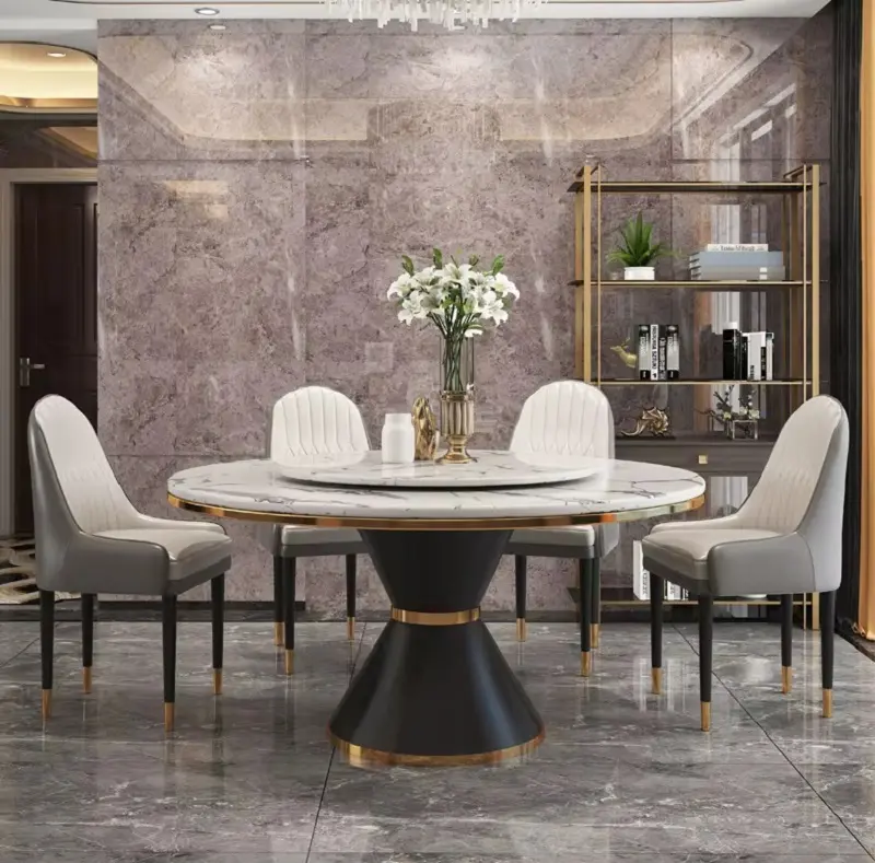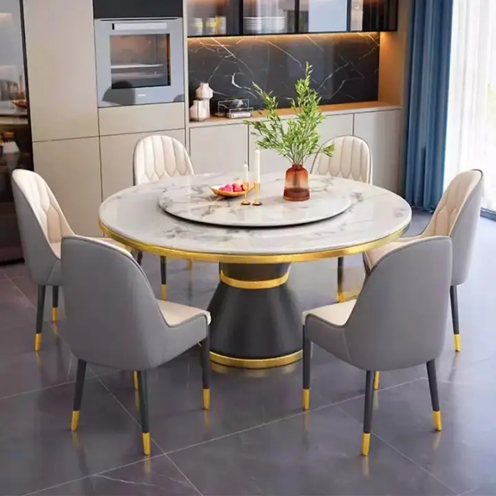 استمتع بسهولة التحدث مع جميع الضيوف حول الطاولة بفضل التصميم المستدير الذي يتضمن قرصًا دوارًا، مما يجعل التفاعل بين الأشخاص أكثر راحة وملاءمة.
