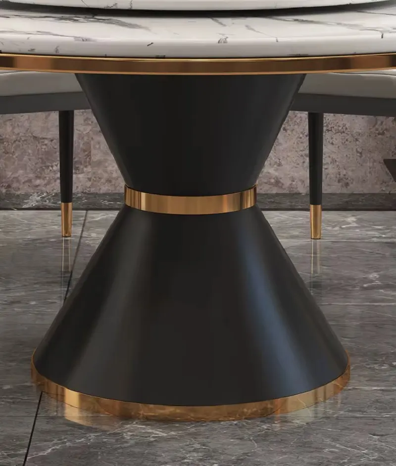 صُممت هذه السفرة باستخدام مواد عالية الجودة لتضمن الاستدامة والمتانة الطويلة. يتميز الإطار المعدني بجودته العالية، بينما يأتي سطح طاولة من الرخام الصلب، مما يُضفي لمسة فاخرة وفريدة على الديكور الخاص بك.